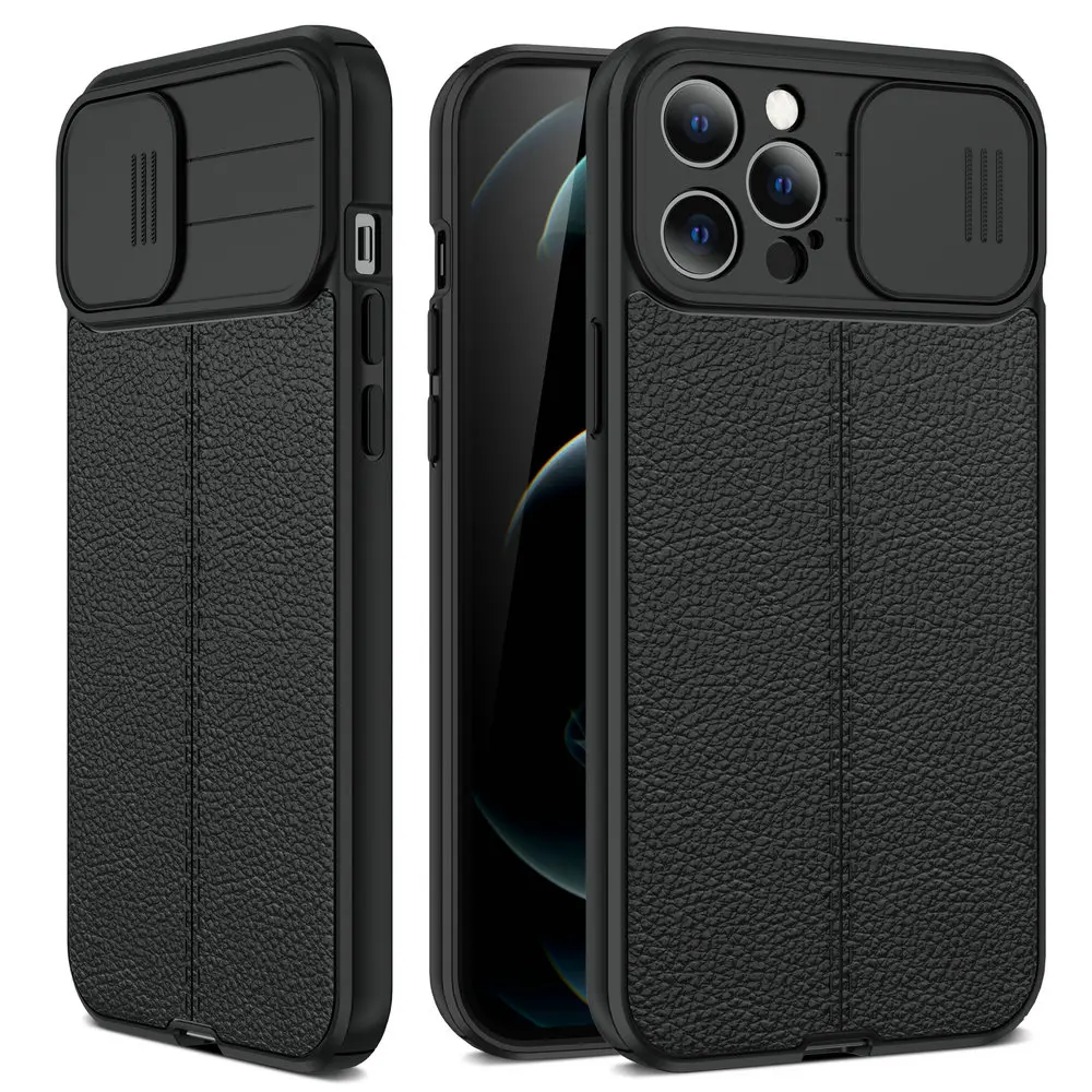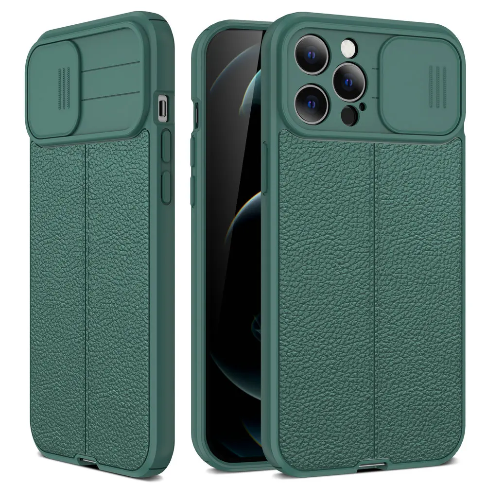 Design 1Luxury Litchi Texture Back Cover Camera Lens Push Protector Cases