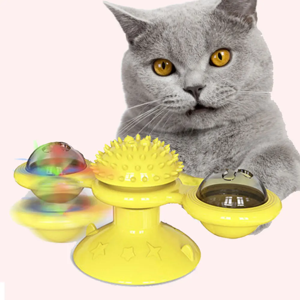 Хорошо вращающаяся ветряная мельница, забавная игрушка для кошек, может излучать светильник ятную присоску, игрушка для кошек, может молар, потеть зуд отдельно, Веселитесь