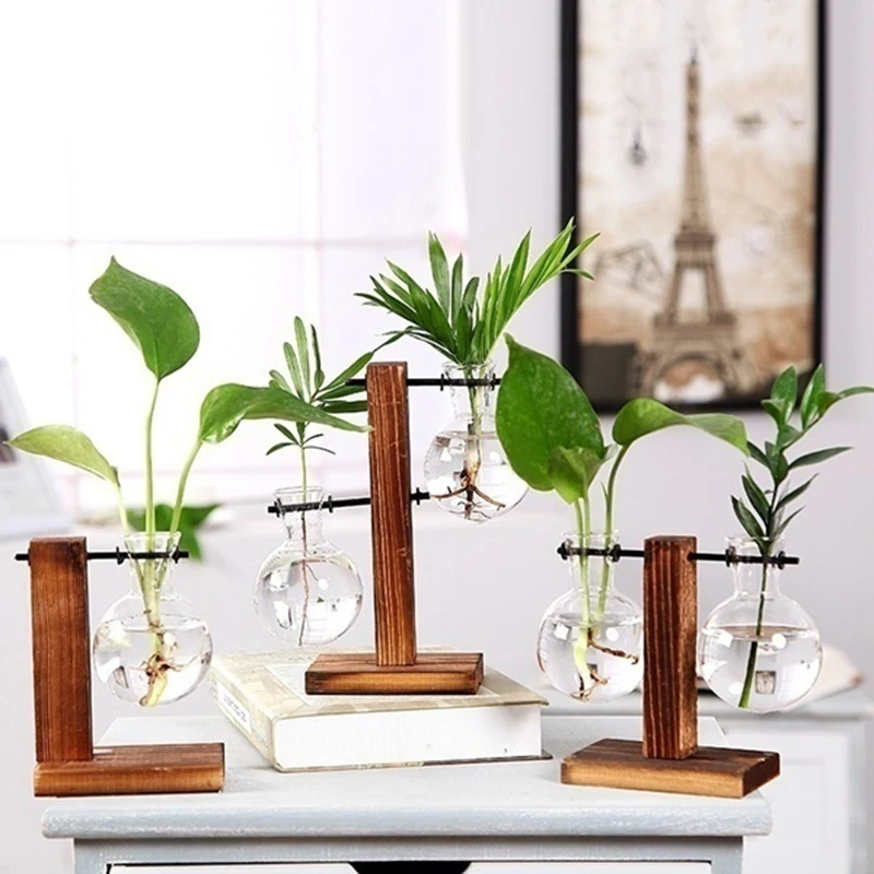 Креативная деревянная рамка, гидропонное стекло, цветок, прозрачный, Скандинавский дизайн, ваза для гостиной, рабочего стола, украшения для дома