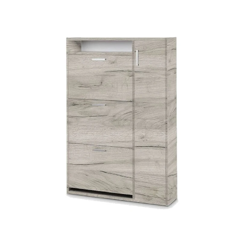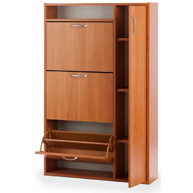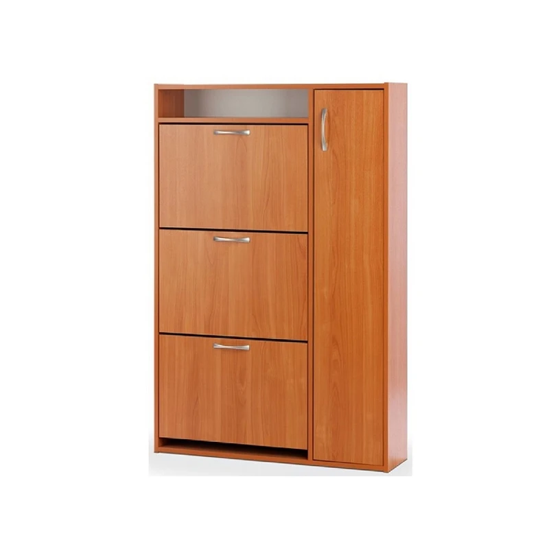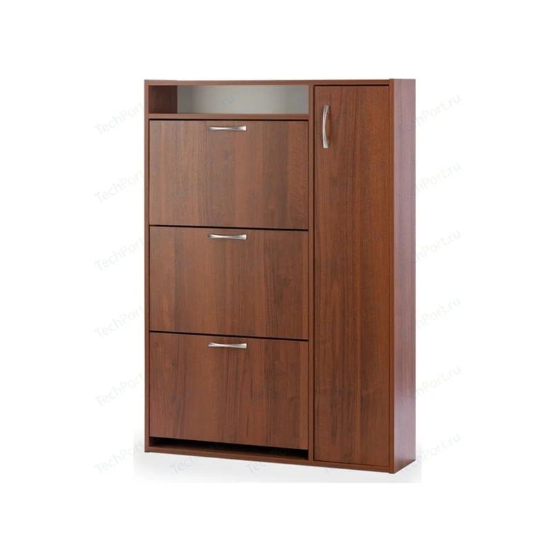 Оборудована одним закрытым отделением с тремя полками и тремя откидными секциями с ограничителями и пластиковыми кронштейнами внутри, для удобного хранения обуви. Размер изделия (ВхГхШ): 1237x255x874 мм. Вес: 33 кг. Техническое описание Тип продукции: обувница Материал: ЛДСП-16мм, кромка ПВХ-0,4, пластиковые кронштейны Размер изделия (ВхГхШ): 1237x255x874 мм Вес: 33 кг