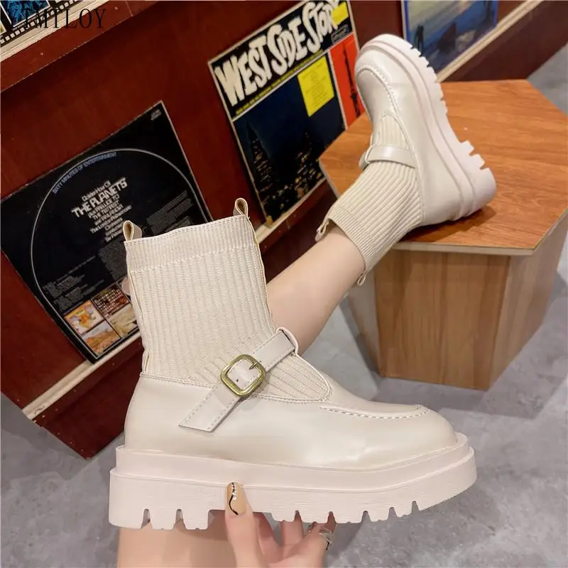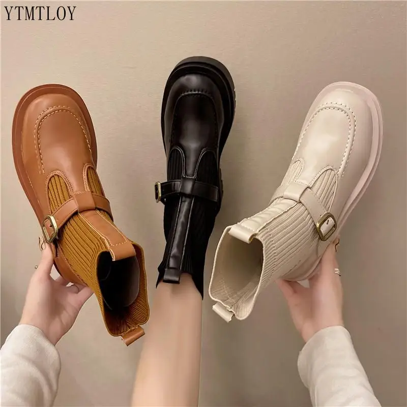 Женские ботильоны в стиле ретро, эластичная нескользящая обувь на толстой подошве, с пряжкой и ремешком, осень 2022
