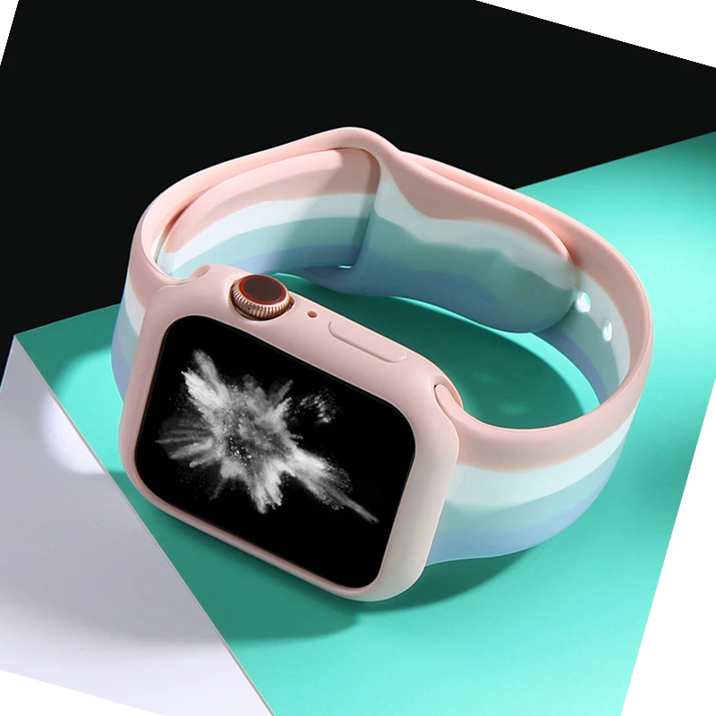 Чехол Радужный + ремешок для Apple Watch band 44 мм 40 мм 38 мм 42 ...