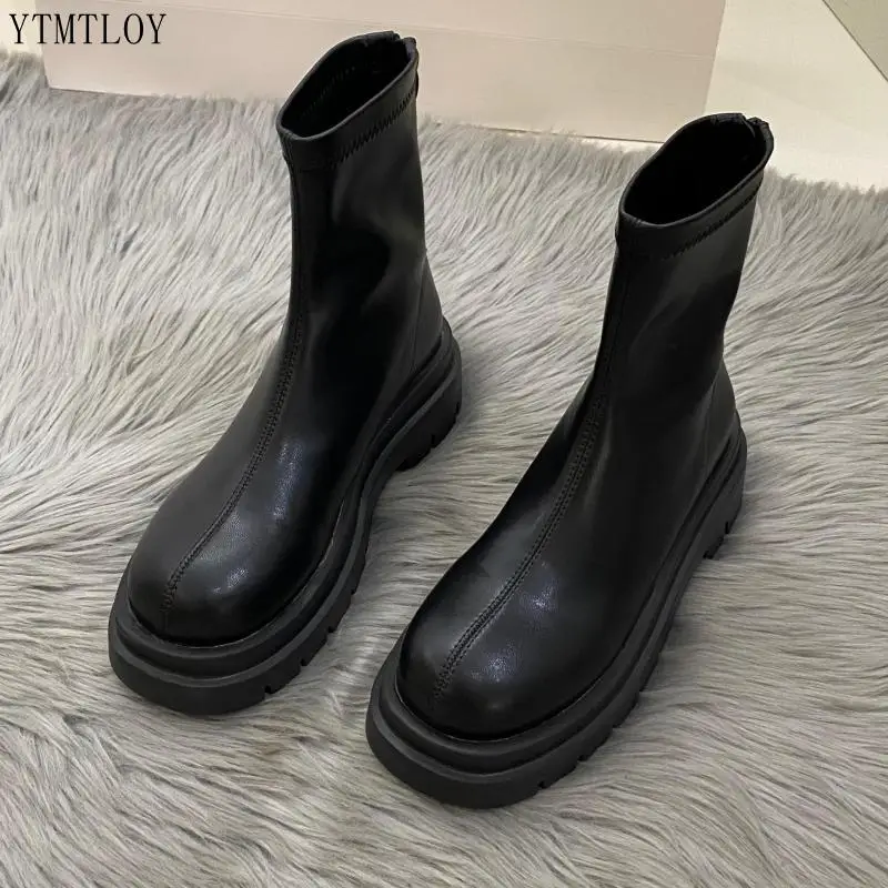 Женские ботинки с круглым носком, черные резиновые римские ботинки ...