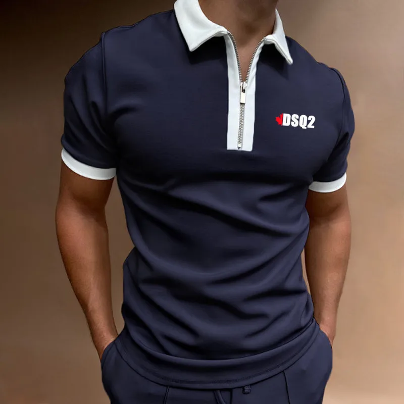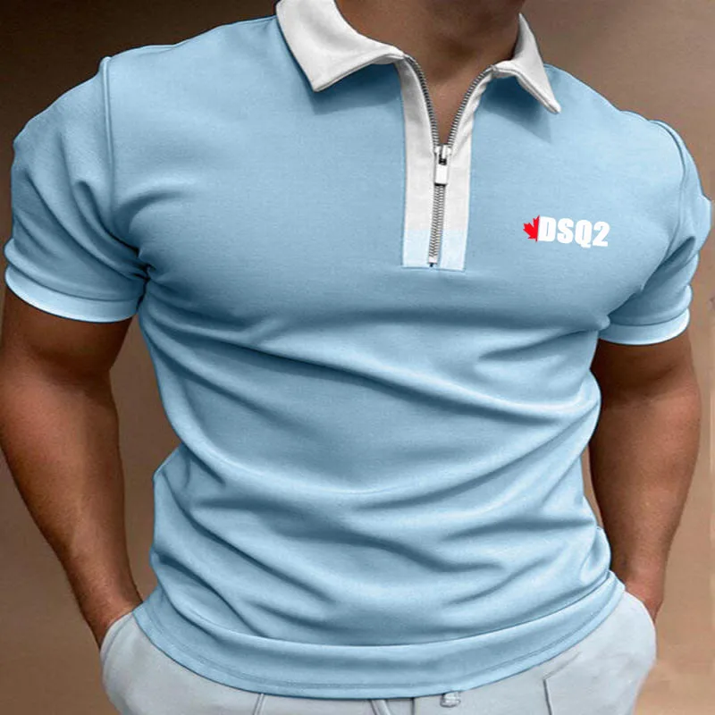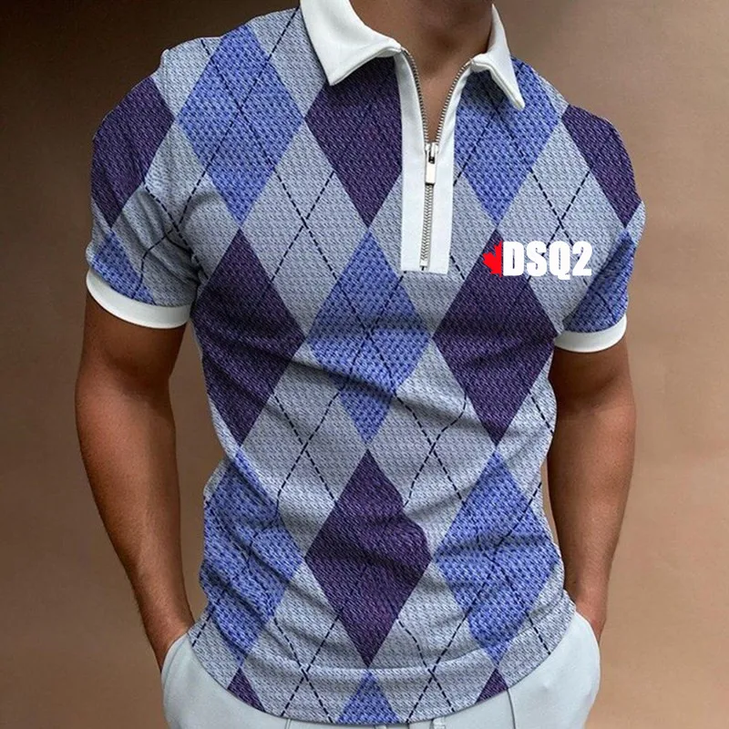 Мужская рубашка-поло в полоску, с коротким рукавом
