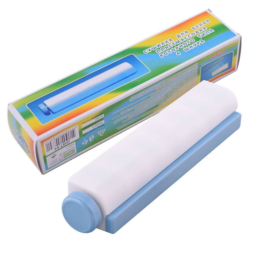 Компактная сушилка для белья поместится даже в самом маленьком пространстве! Приспособление подойдет для ванных комнат, кухни и балконов, легко монтируется с помощью специального крепежа. Длина одной линии 3,6 м, общая полезная длина 14,4 м. Подходит для сушки белья, полотенец, предметов одежды. Не рекомендуется использовать для развешивания одеял, подушек, тяжелых покрывал и верхней одежды.Изготовлена: корпус из пластмассы (полипропилен) 30х6х6 см, шнур витой из синтетического материала (ПП).В комплект входит: сушилка роторного типа – 1 шт.; шурупы обычные – 2 шт.; шурупы-держатели – 2 шт.; дюбели - 4 шт.