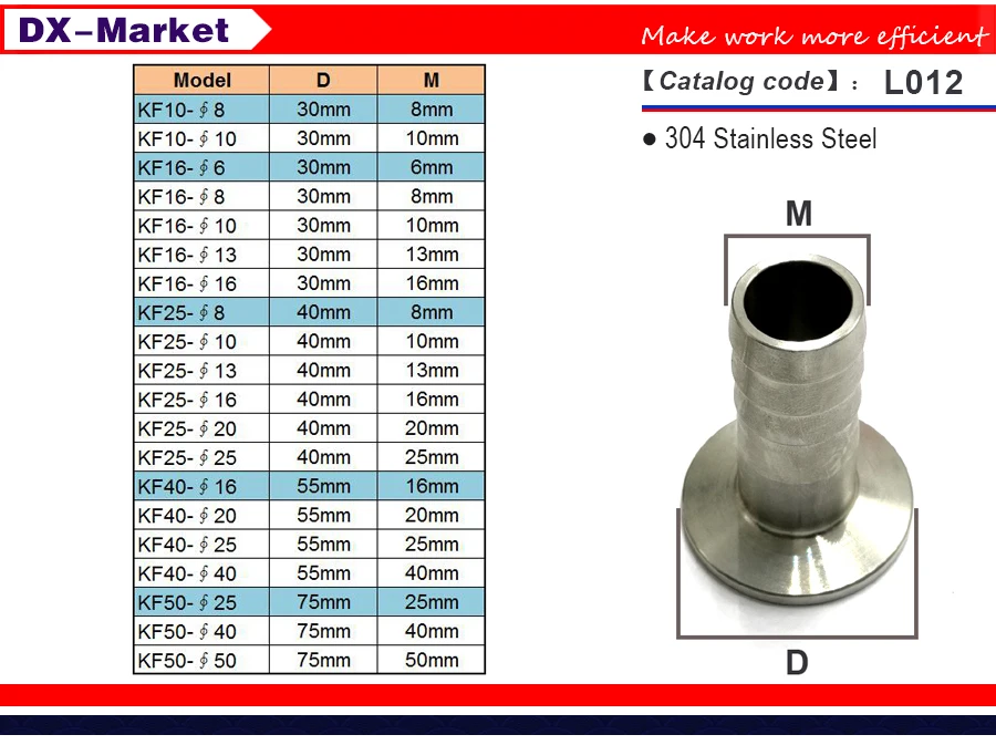 KF10 KF16 KF25 KF40 KF50 стандартный адаптер с зазубринами, санитарные вакуумные фитинги из нержавеющей стали 304, L012