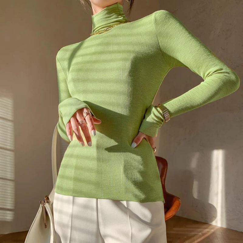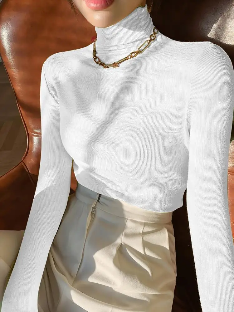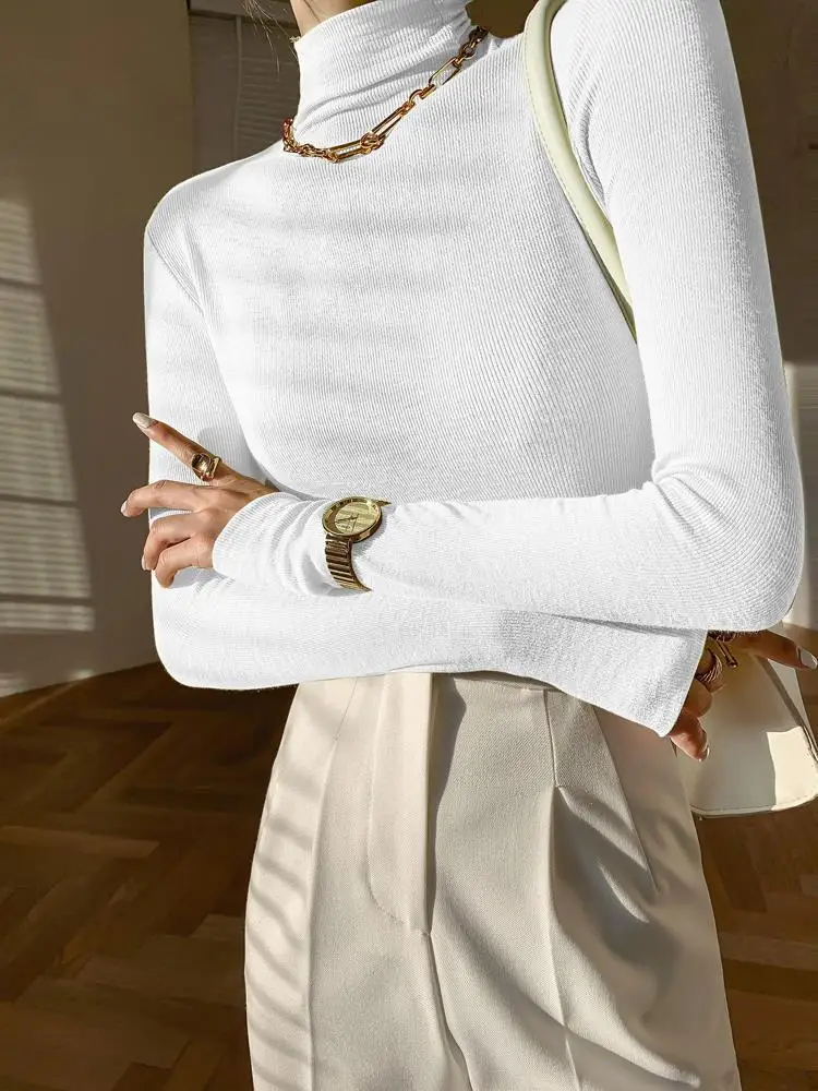 Футболка женская с длинным рукавом, универсальная элегантная приталенная однотонная модная водолазка в винтажном стиле, для отдыха, в стиле ольччан, осень
