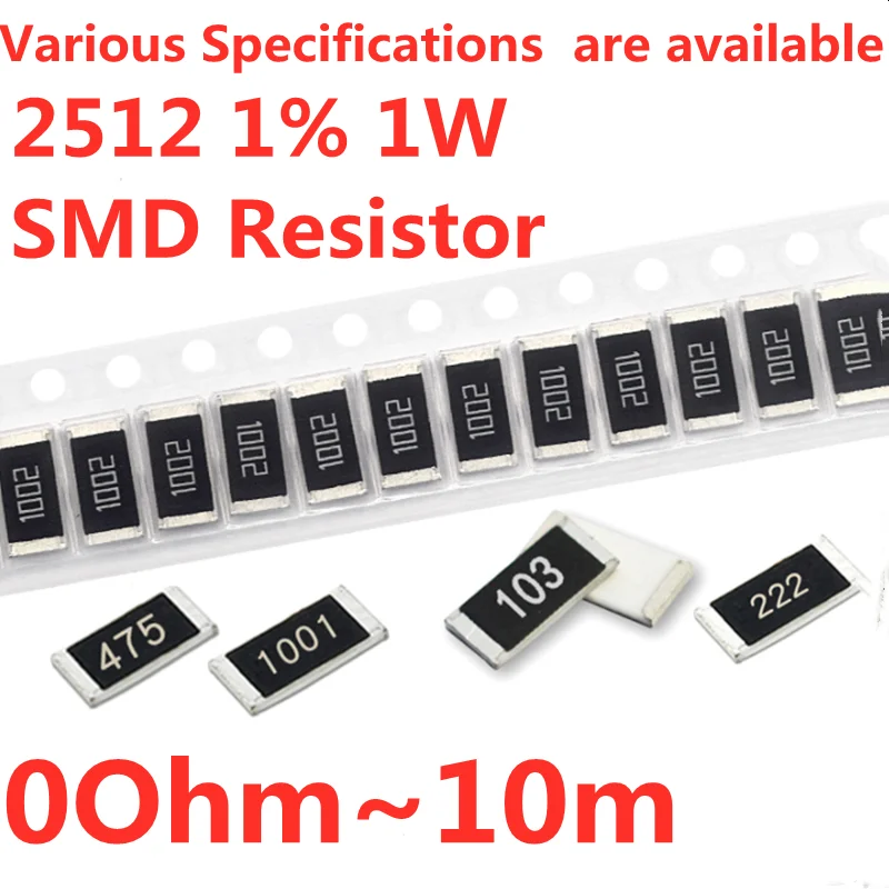 50 шт. 2512 1 Вт 1% SMD резистор 0R 10M 0 1 10 100 180 220 4,7 Ом 1K 8,2 K 100K 10K 220K 0R 2R 10R 47R 100R 150R 200R 470R