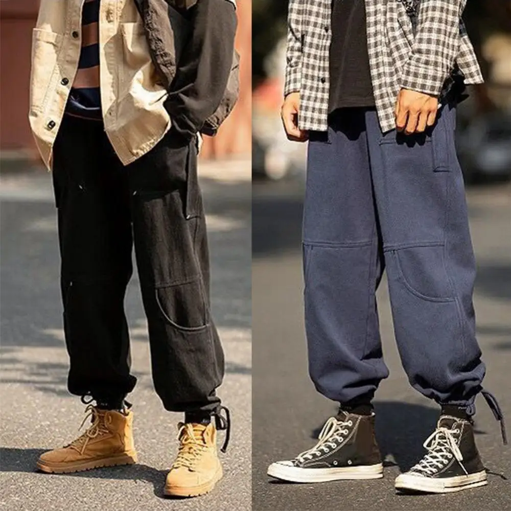 Модные мужские брюки с мягкой талией и поясом на лодыжке, широкие Свободные повседневные брюки, брюки с несколькими карманами, брюки-карго в уличном стиле, 2021