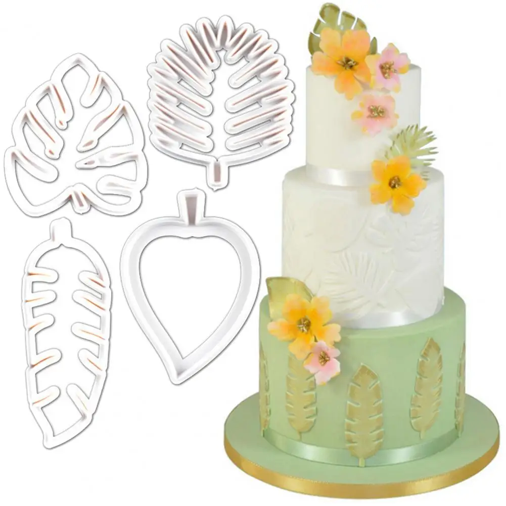 4 шт. форма для торта в форме листа, товары для рукоделия, пластиковые украшения, печенье, резак для печенья, тропическая зеркальная форма для торта, форма для выпечки