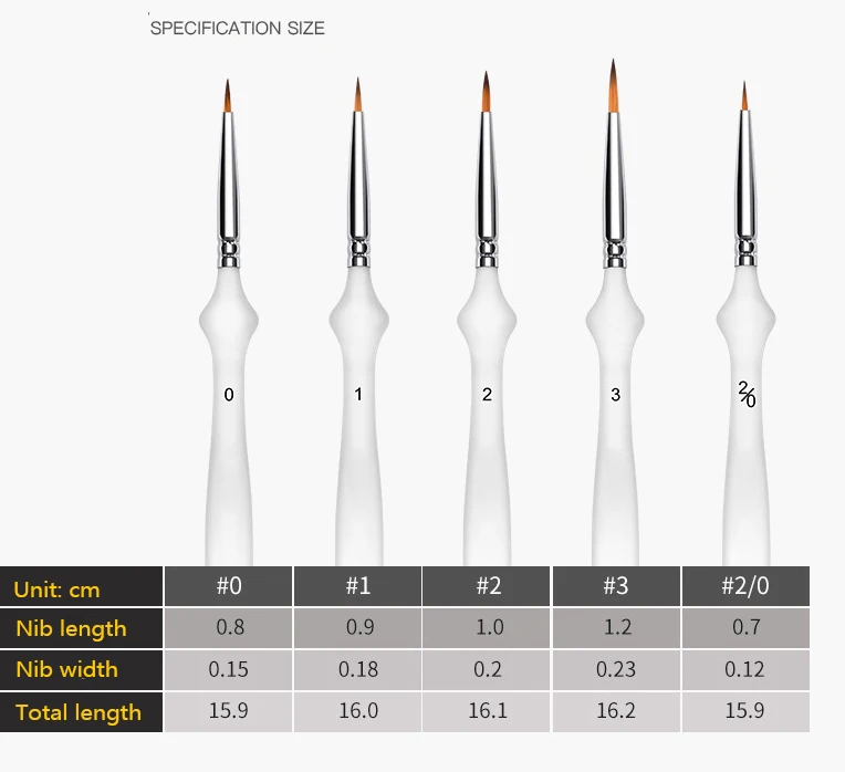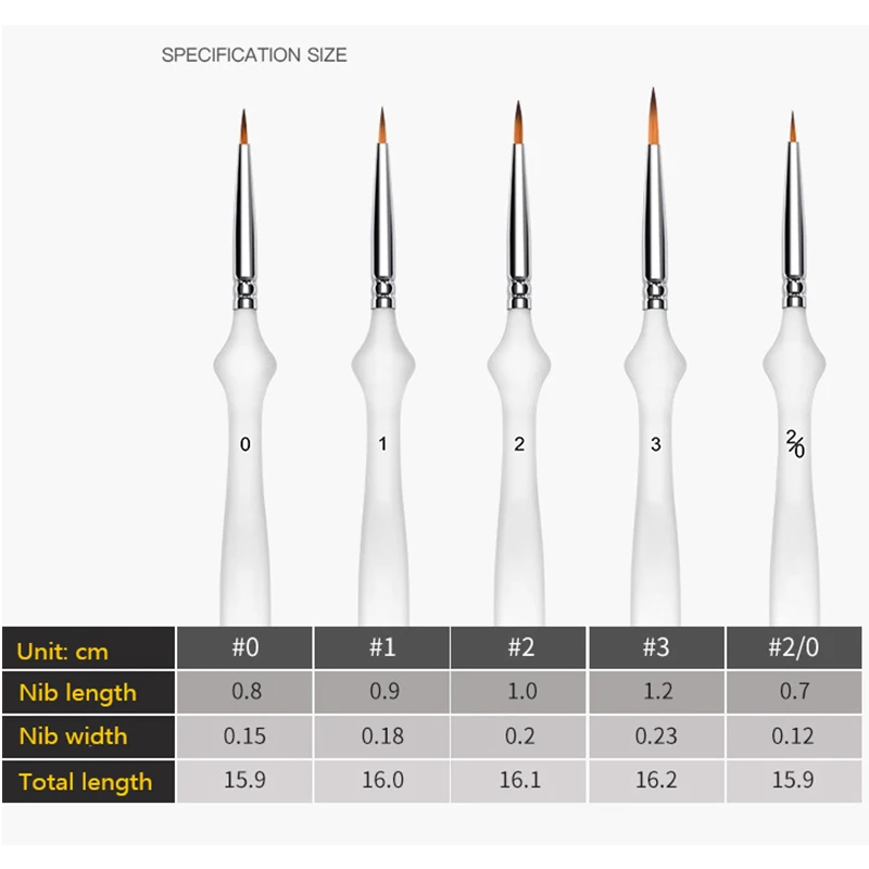 Набор кистей для рисования с мелкими деталями, 5 элементов, искусственная краска для акварели, акриловых красок, комплектов для самолета, лица, акриловые детали для ногтей