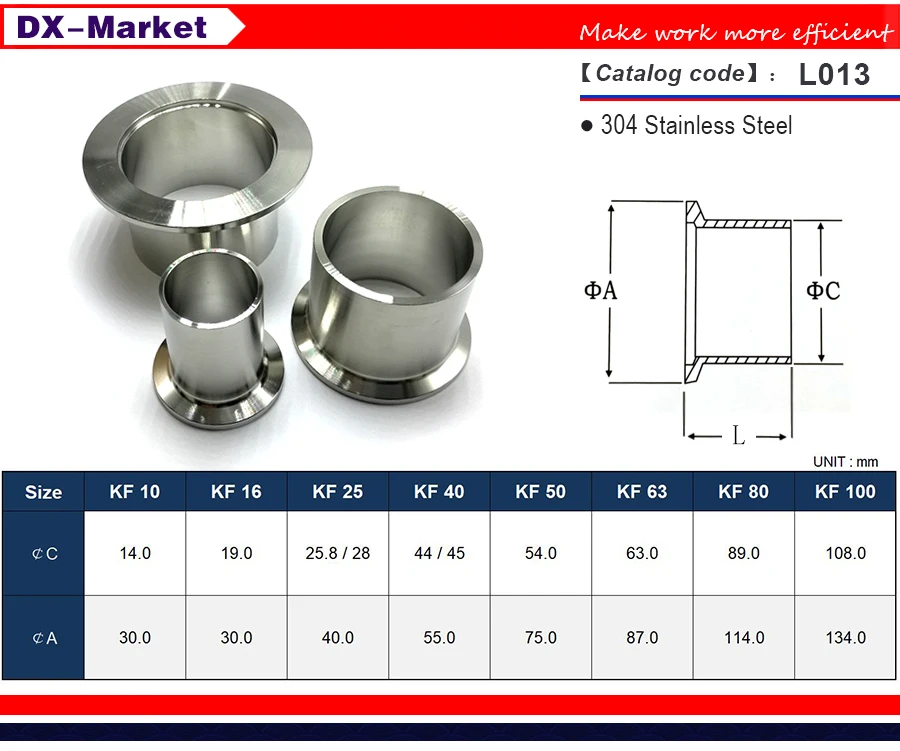 KF10-KF100 SS304, фитинги для санитарного вакуумного фланца, L013