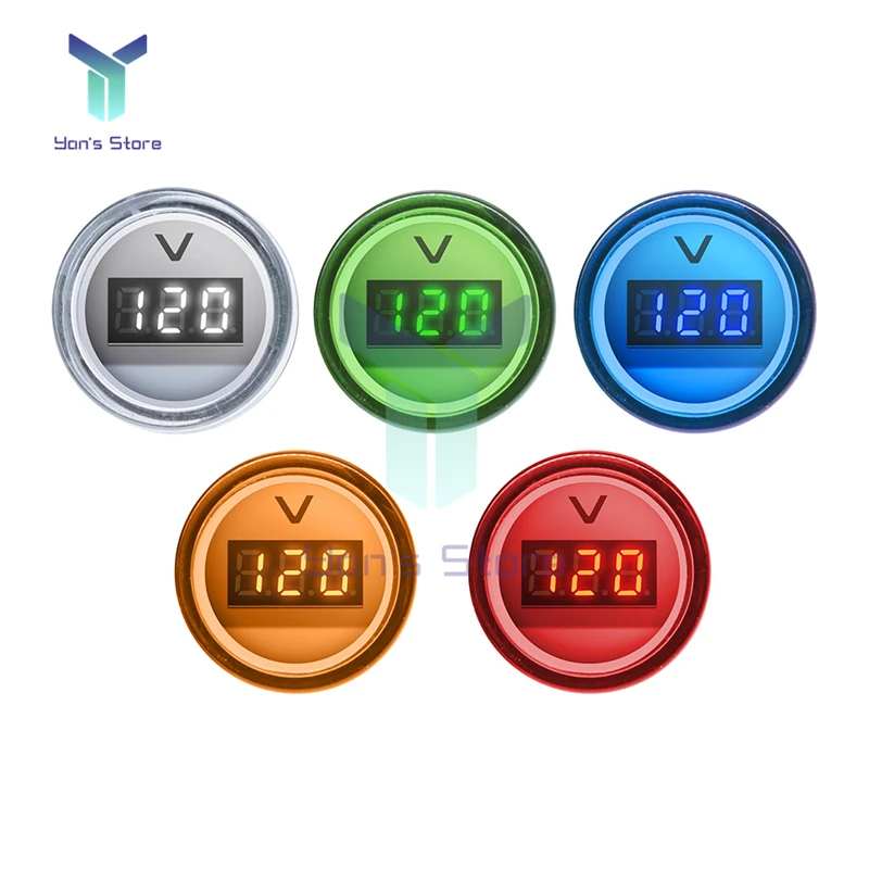 Мини AC 60-500 В светодиодный вольтметр 22 мм круглый цифровой дисплей тестер напряжения Измеритель Индикатор Пилотная лампа светильник вой дисплей многоцветный