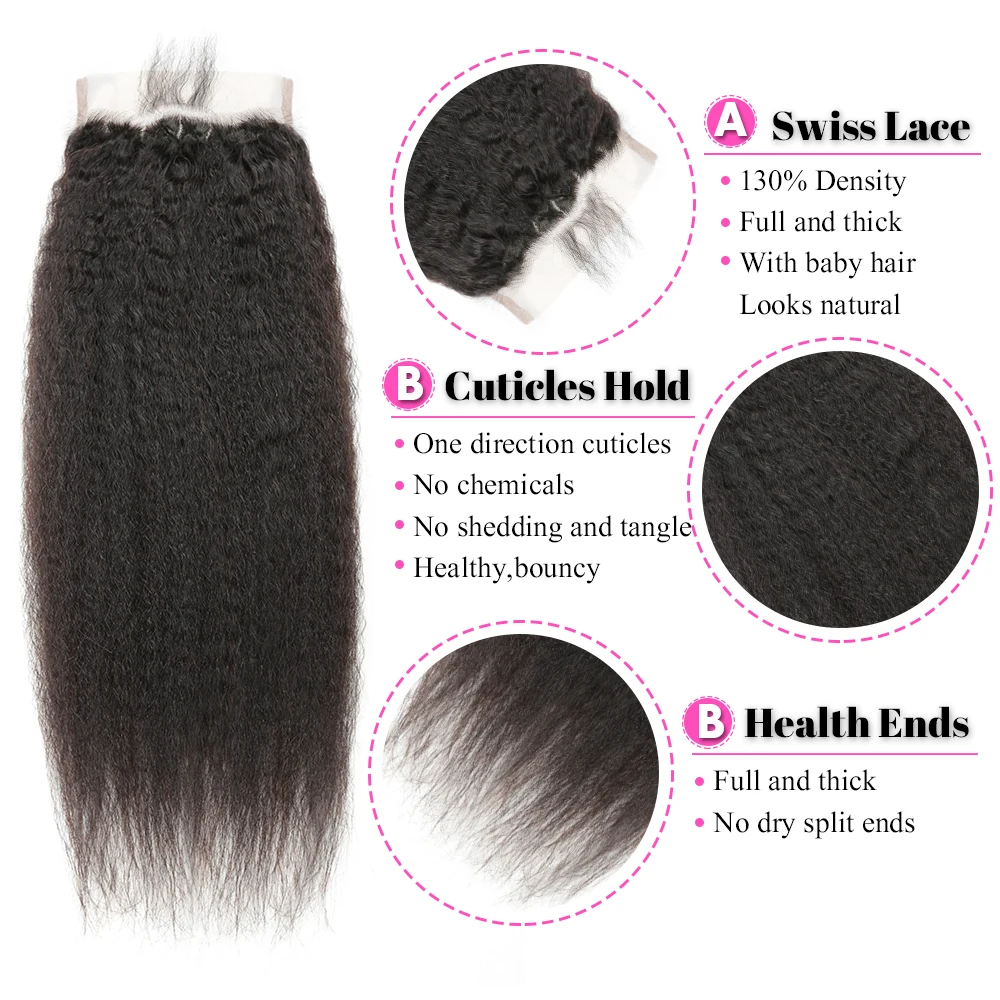 4x4 кружевная застежка 13x4, фронтальная кружевная прямая застежка Yaki, фронтальная курчавая прямая 100% Реми искусственная кожа, Детские волосы