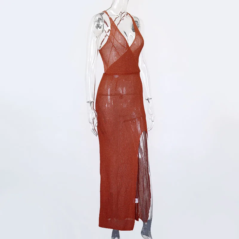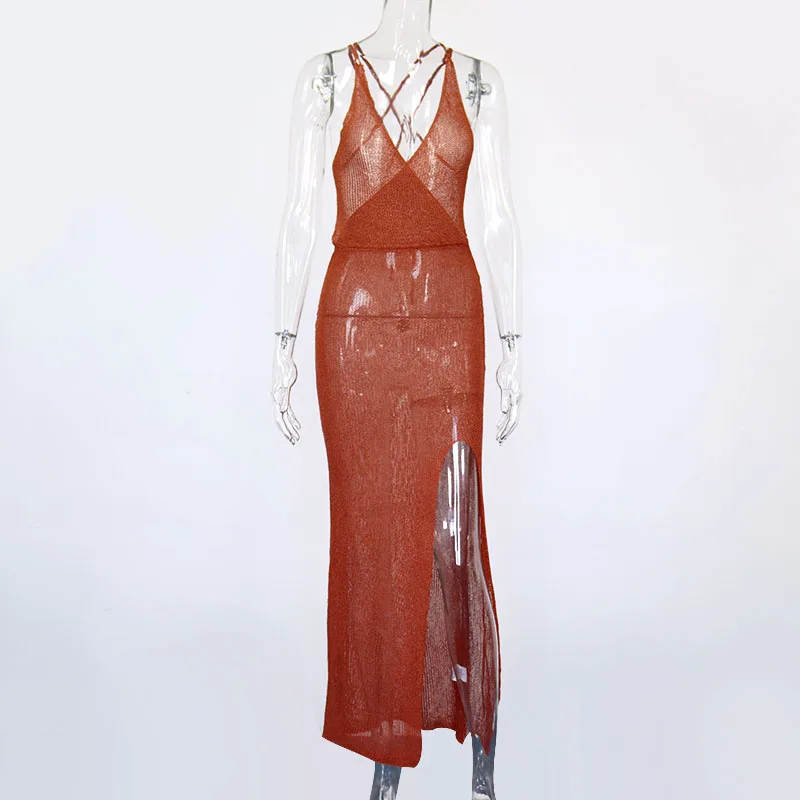 Женское пляжное платье макси, Прозрачное платье с открытой спиной и...