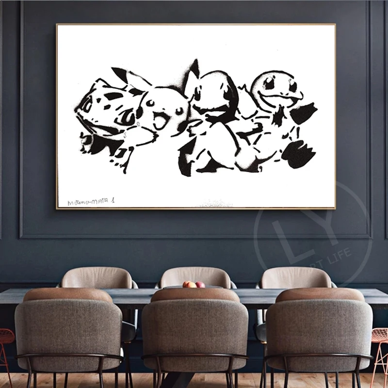 Домашний Декор печать роспись Покемон карманные монстры черно-белый постер Пикачу холст живопись картина Настенная Наклейка Искусство