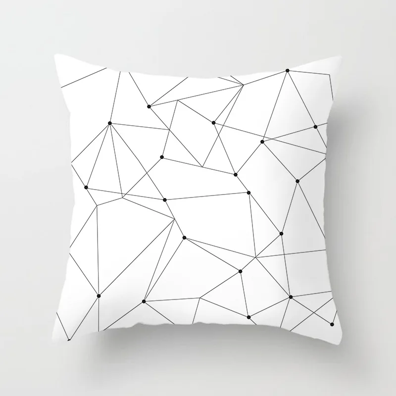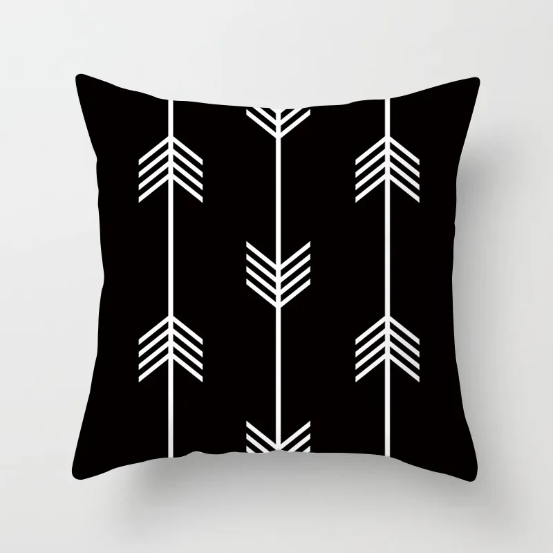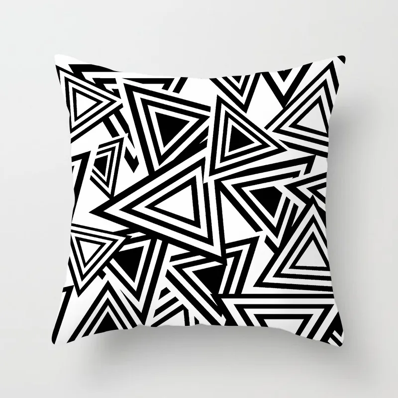 Черно-белый полиэстеровый чехол для подушки с геометрическим рисунком
