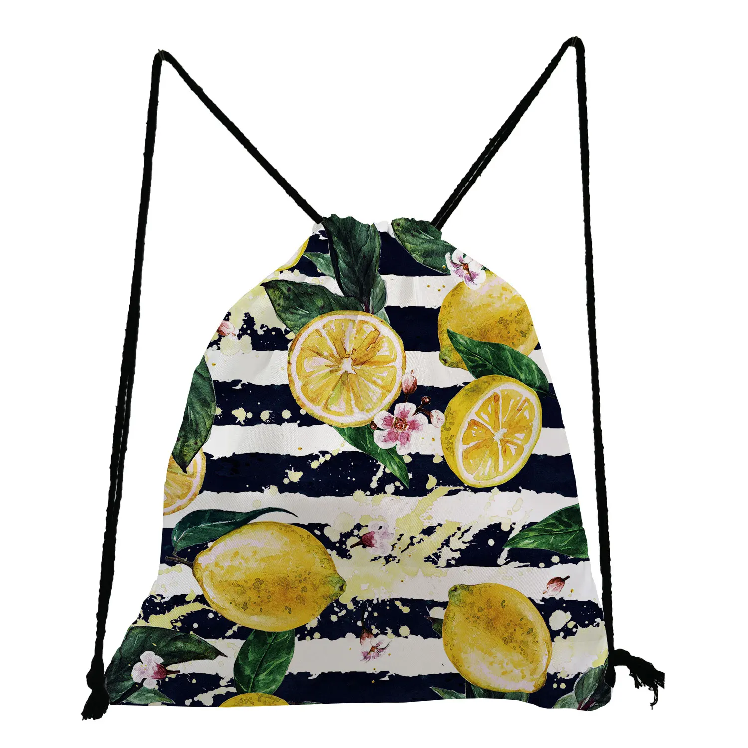 Полосатые сумки на шнурке с фруктовым принтом, Освежающая мягкая сумка с лимонным принтом, повседневный рюкзак унисекс, вместительная сумка для обуви для школы