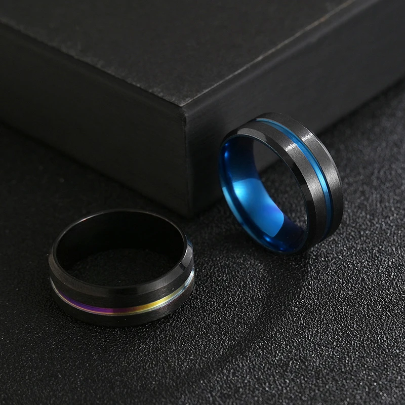 Лидер продаж, черные и синие панковские кольца в форме канавки, миди-кольца из нержавеющей стали для мужчин, очаровательные женские ювелирные изделия, Прямая поставка, оптовая продажа
