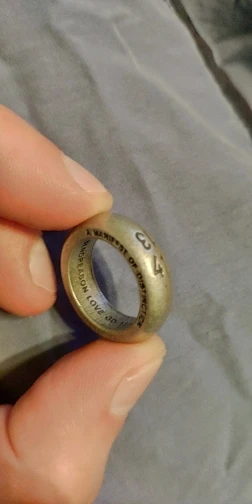 Как на фото, но вживую смотрится странно. Гравировка снаружи норм, но внутри с трудом можно разобрать что написано.