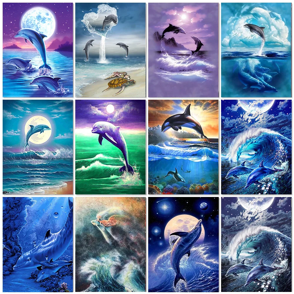 Квадратнаякруглая Алмазная вышивка, дельфин, вышивка крестиком 5D, наборы для алмазной живописи, мозаика с животными, распродажа, стразы, искусство, ручная работа, подарок