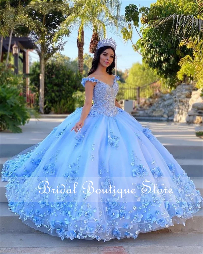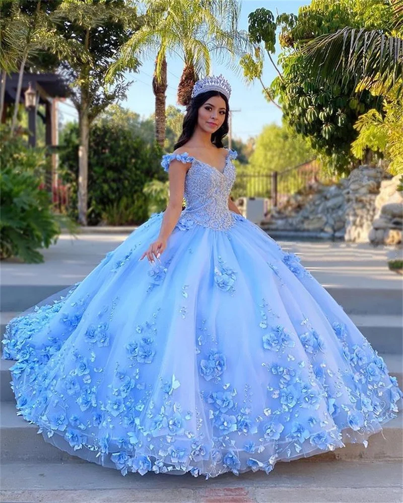 Платье женское с 3D цветами, милое праздничное платье небесно-голубого цвета, на шнуровке, 16, 15 лет