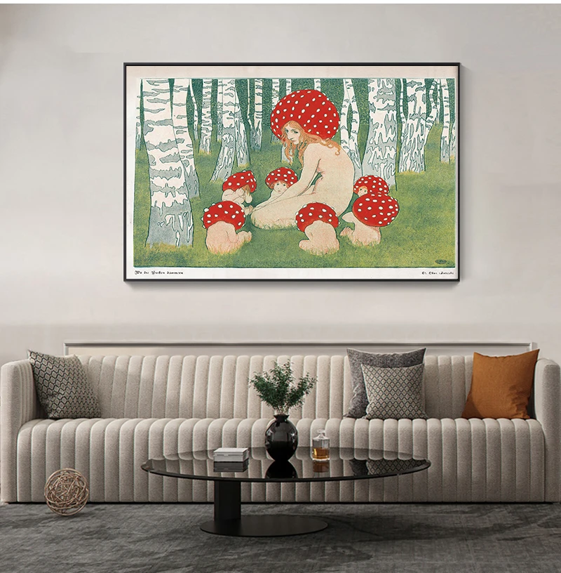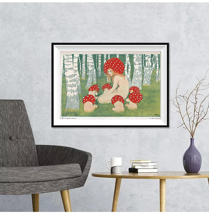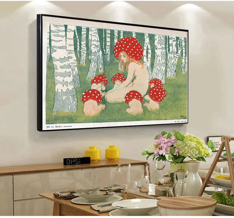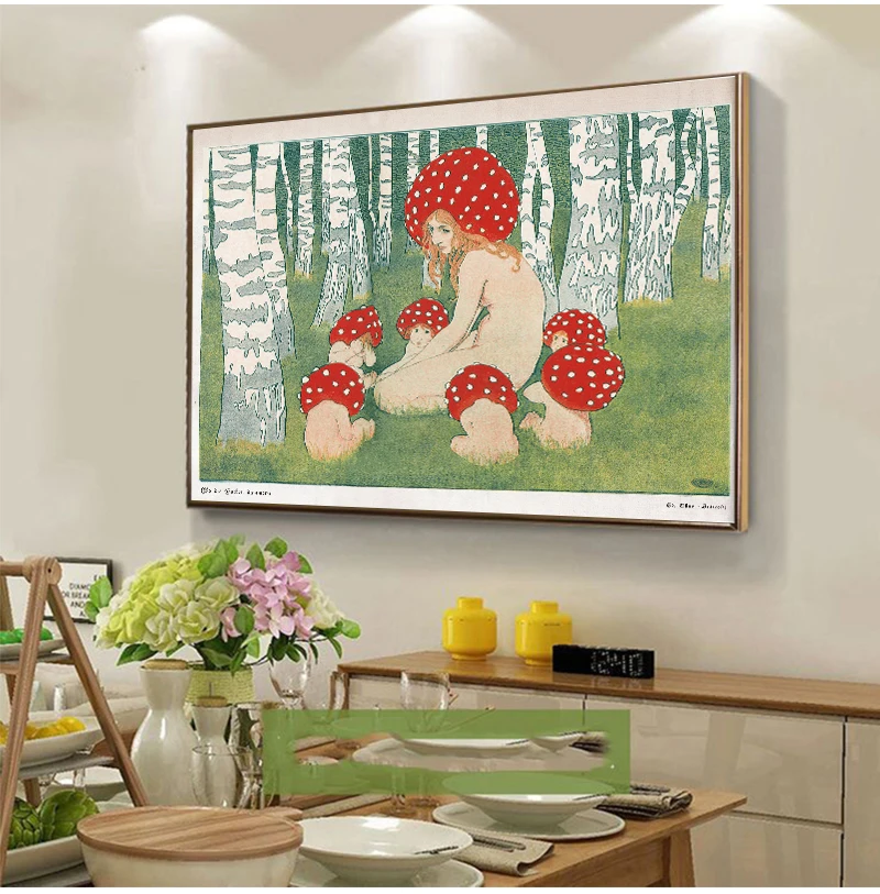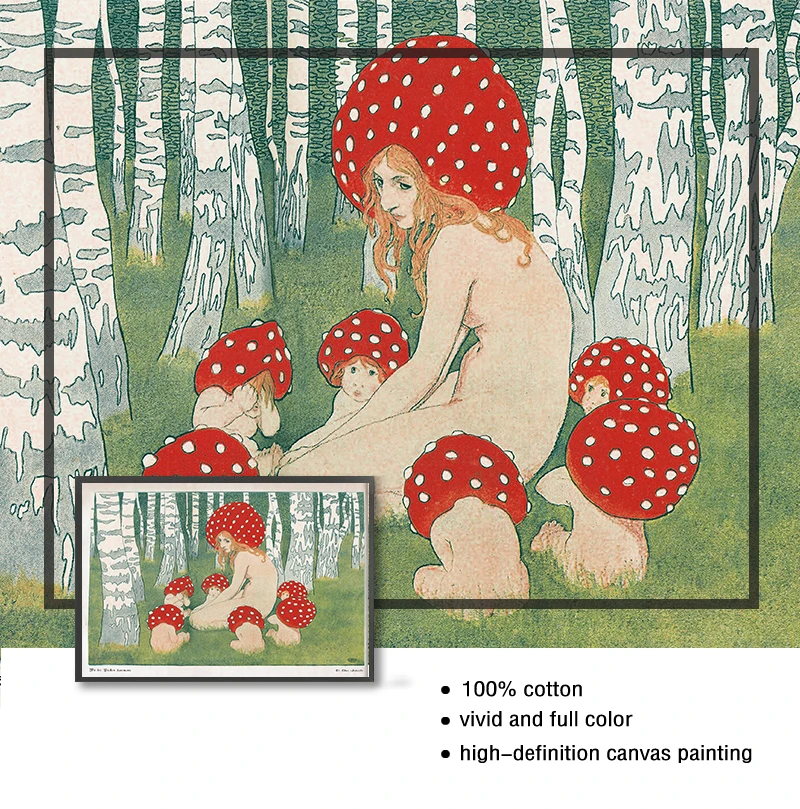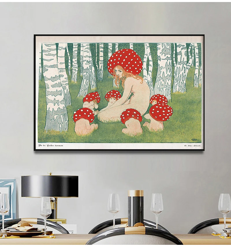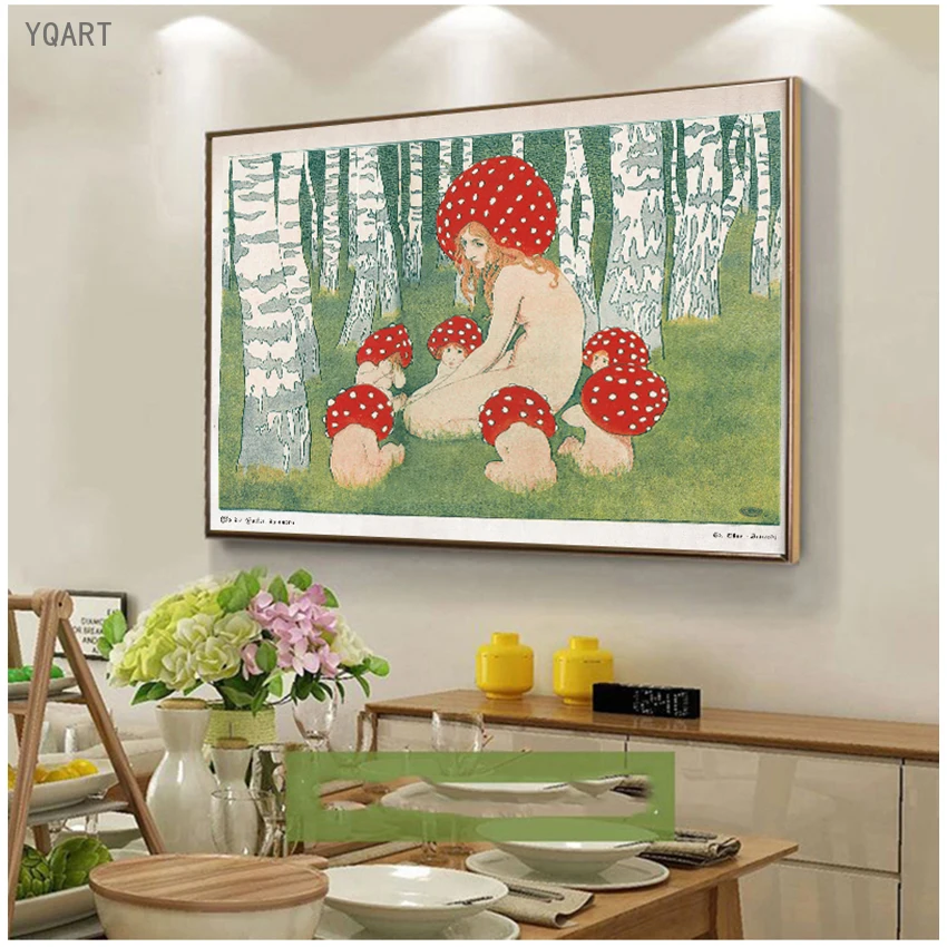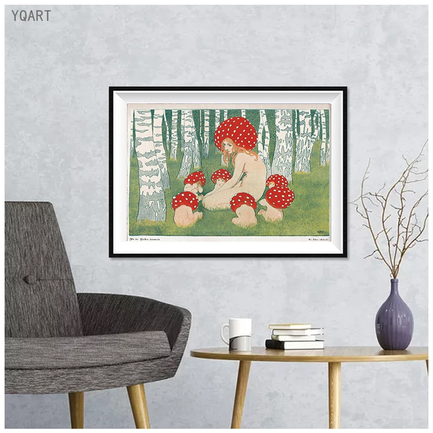 Мать гриб с ней дети холст печать картина Винтаж Искусство Плакат гриб настенное искусство лесной Декор (без рамки)