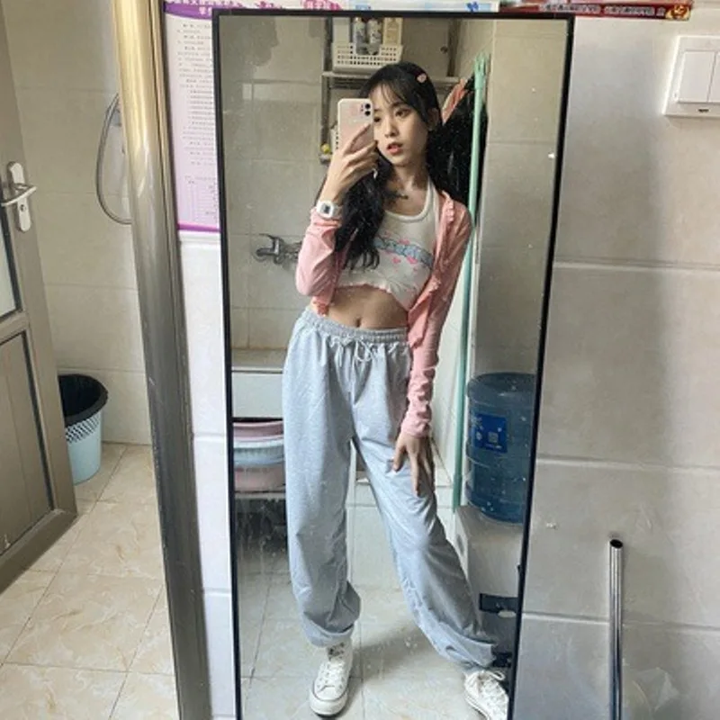 HOUZHOU серые спортивные штаны для женщин 2021 Осенние новые мешков...