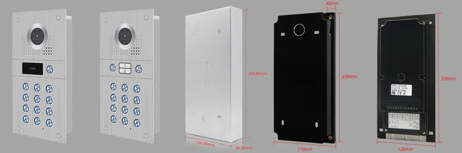 Модель: 84218KPC2FHDРазмер: 240 мм * 120 ммДатчик камеры: 2MP/1200TVL (требуется предварительный заказ)Угол обзора: 170 °Ночной светильник VisionIR,:6 шт. IR светодиодный светильникРежим подключения: 4 проводаИсточник питания: независимый источник питанияПотребляемая мощность: 200 мА макс.Электронный замок: ПоддержкаСпособ разблокировки: пароль, прокруткаРабочая температура:-40 °C + 50 °CВодонепроницаемость: IP65Установка: монтируемая поверхность, вставленная коробка