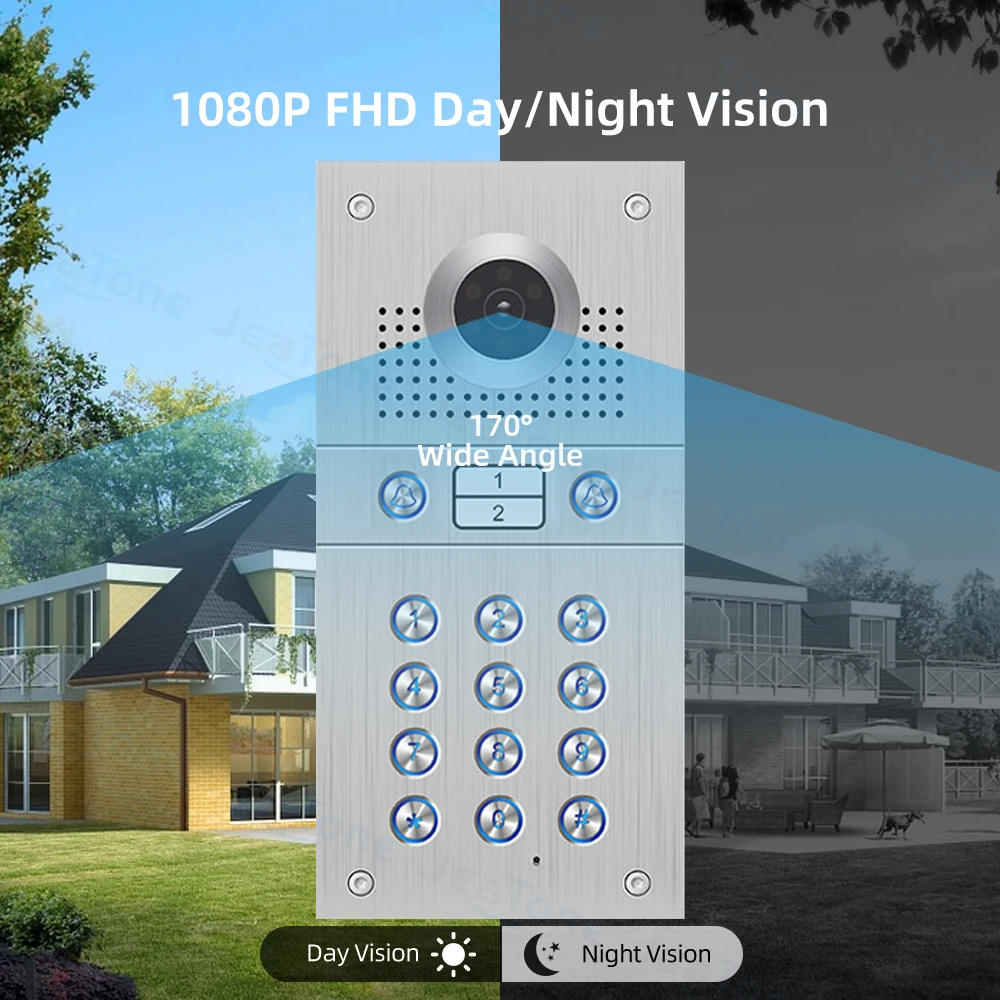 Jeatone 2 квартиры видео домофон 2 кнопки из нержавеющей стали вызов Panal 84218KPC2 AHD1080P 170 рыбий глаз