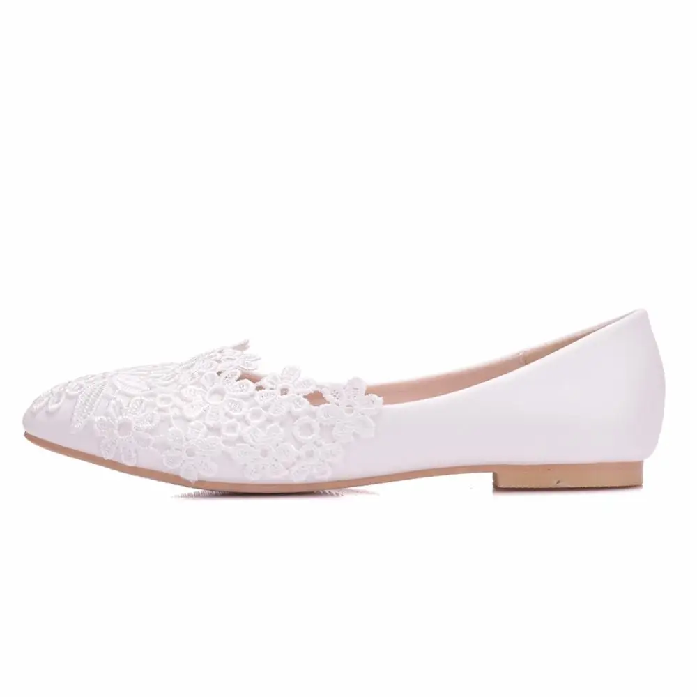 Miaoguan 2021 Летние балетки белые кружевные свадебные туфли на плоской подошве повседневные женские туфли принцессы с острым носком Милая фотообувь 43