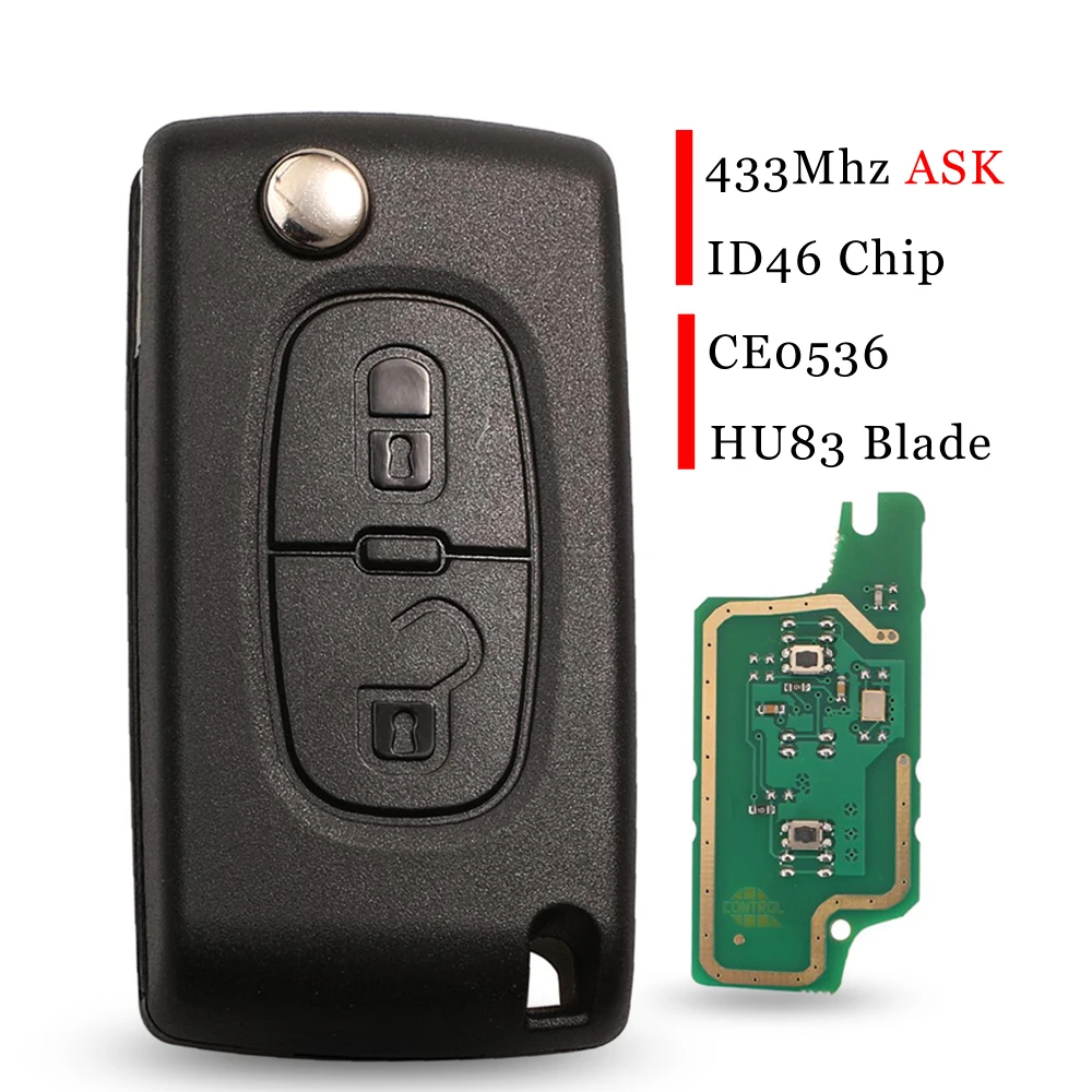 Jingyuqin, 2 кнопки, автомобильная лампа 433 МГц ASK ID46, чип для Peugeot 207 307 SW, для Citroen jumpy HU83 Blade CE0536