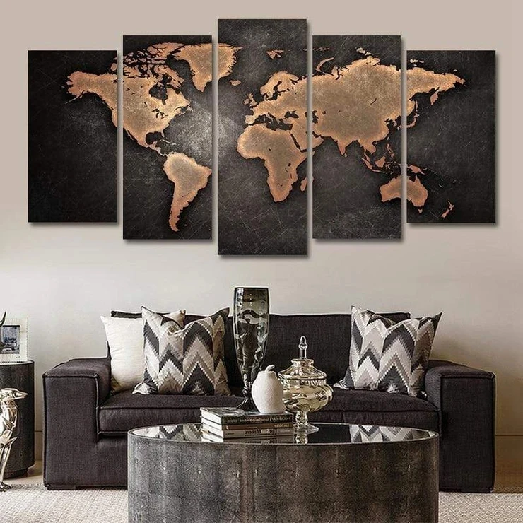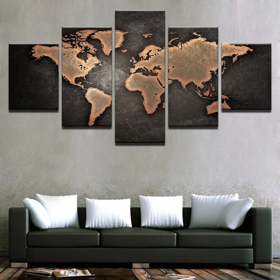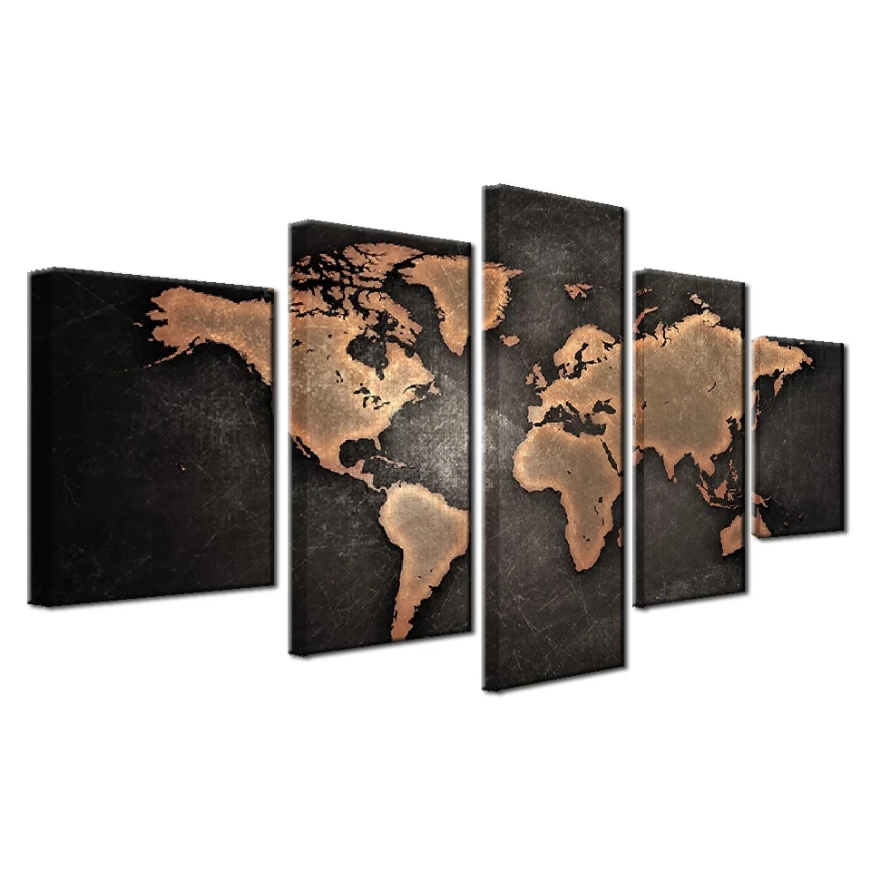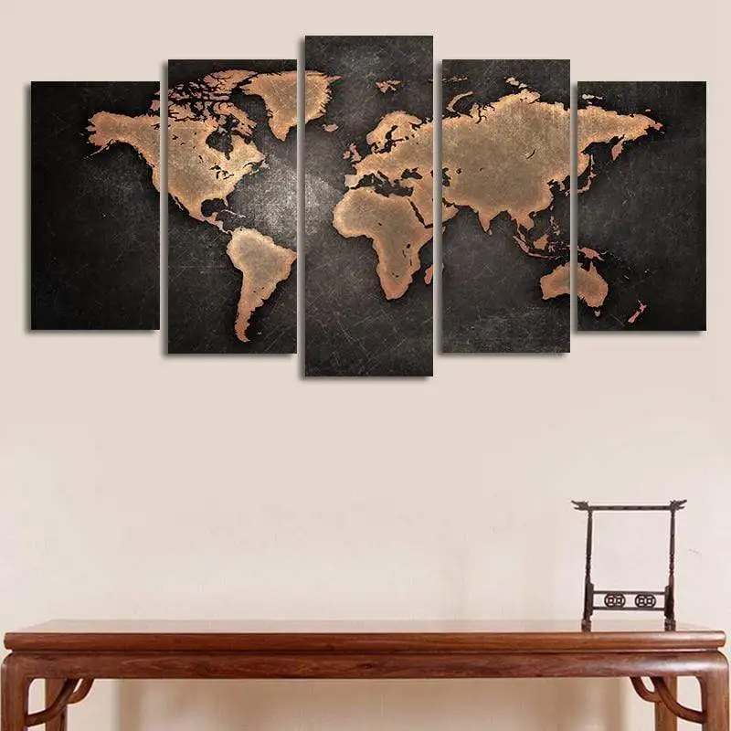 Абстрактный золотой мир плакат-карта печать на холсте большая Ретро...