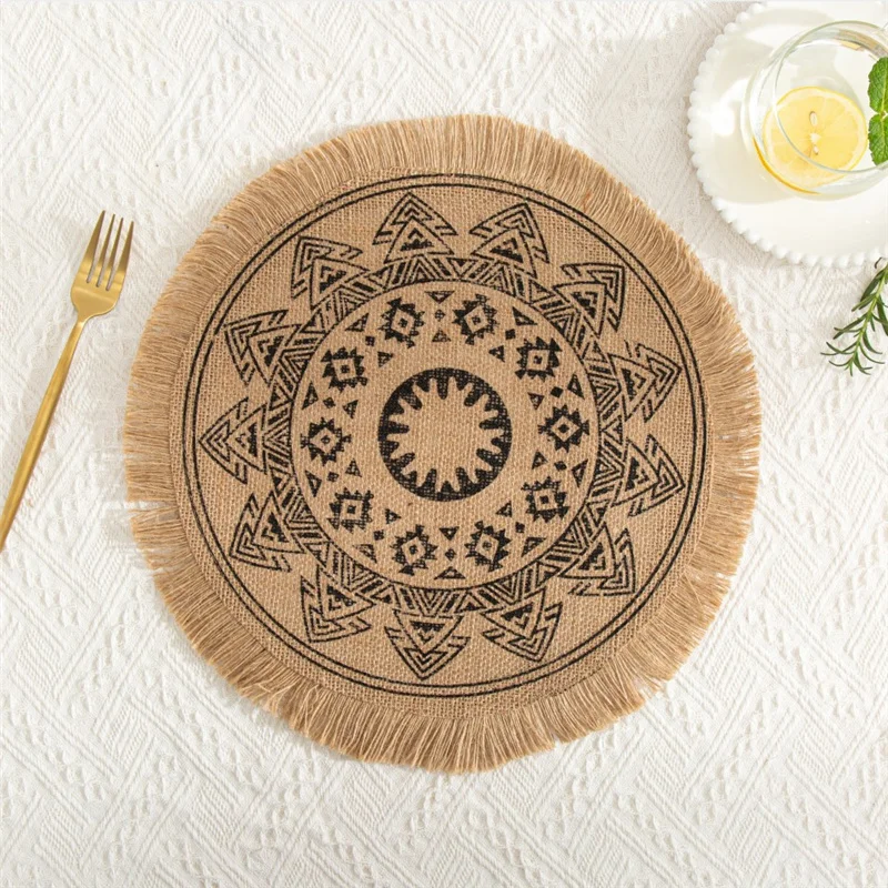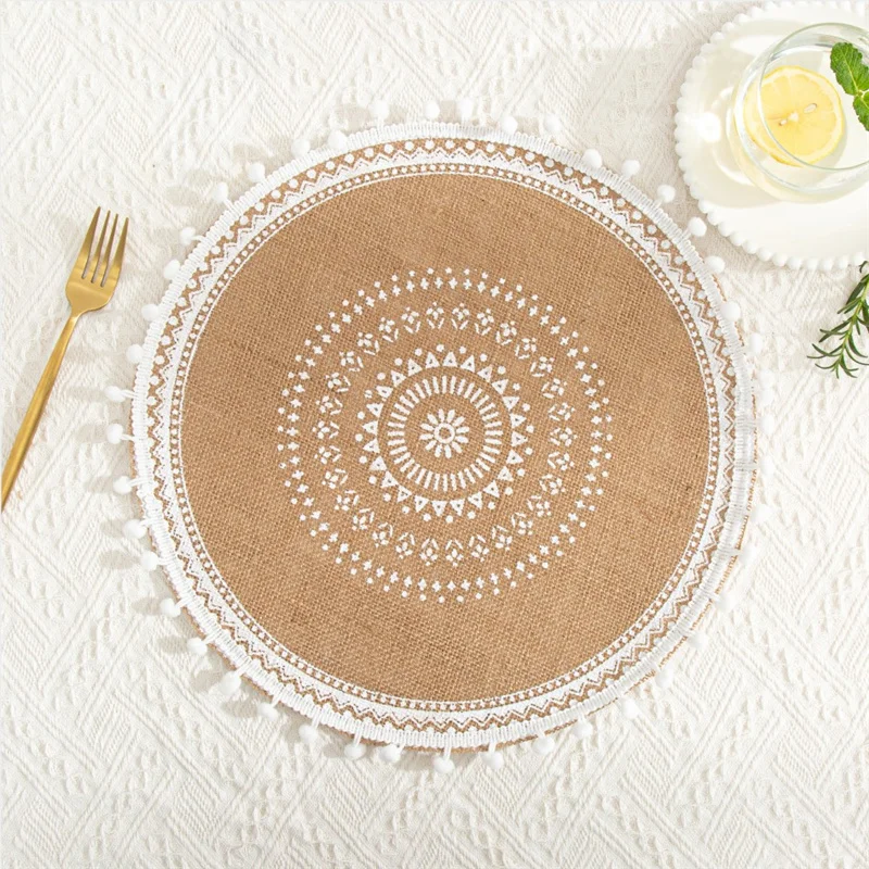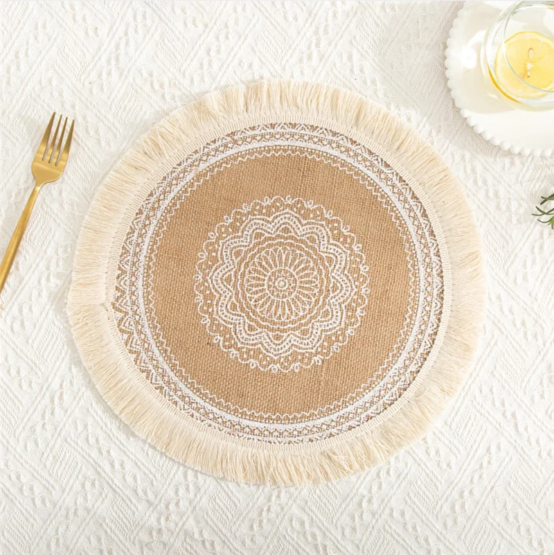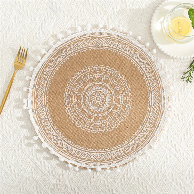 Настольный коврик в скандинавском стиле, нескользящая круглая вышитая подстилка, теплоизоляционный Настольный коврик, столовая посуда с искусственными кисточками, 1 шт.