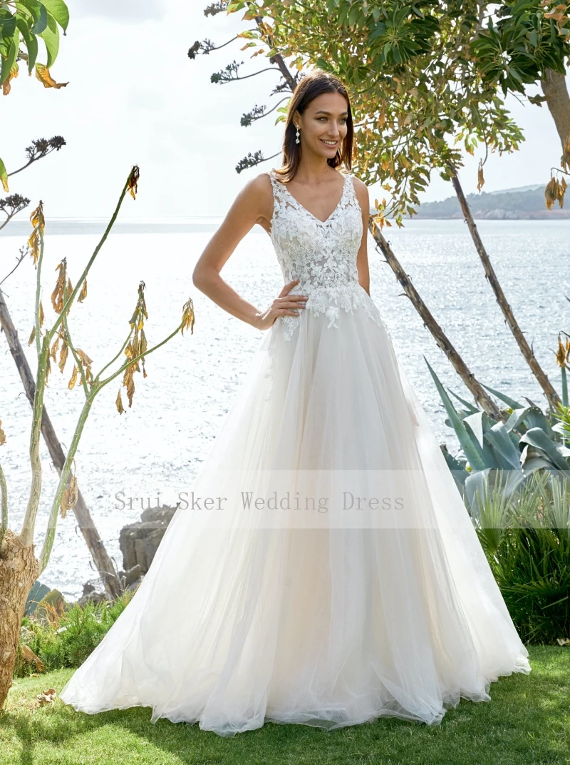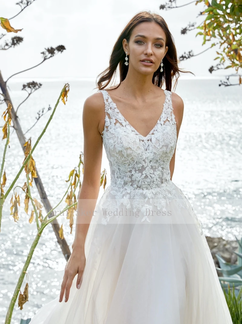 Платье Свадебное ТРАПЕЦИЕВИДНОЕ с аппликацией, пикантное кружевное длинное вечернее бальное платье с глубоким V-образным вырезом