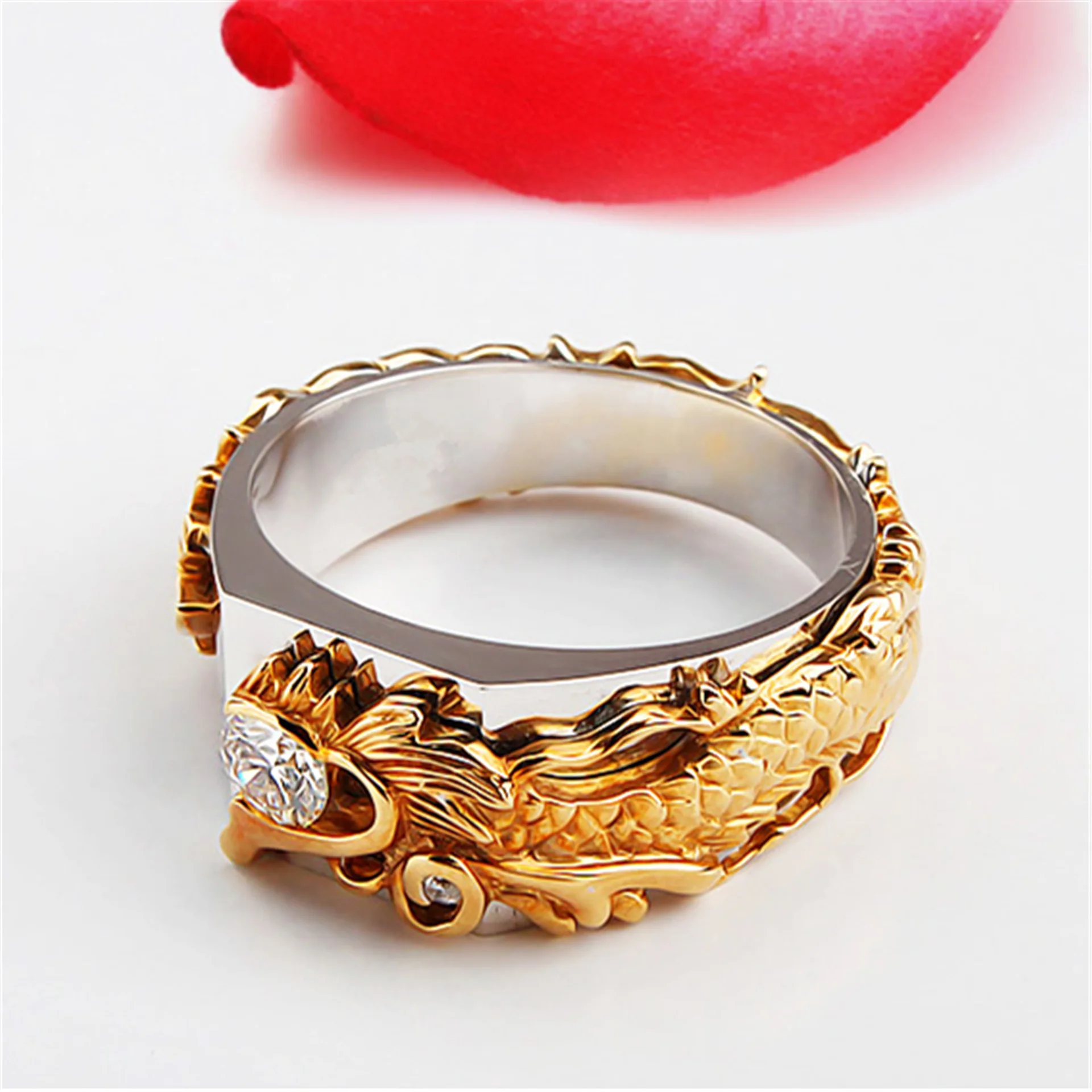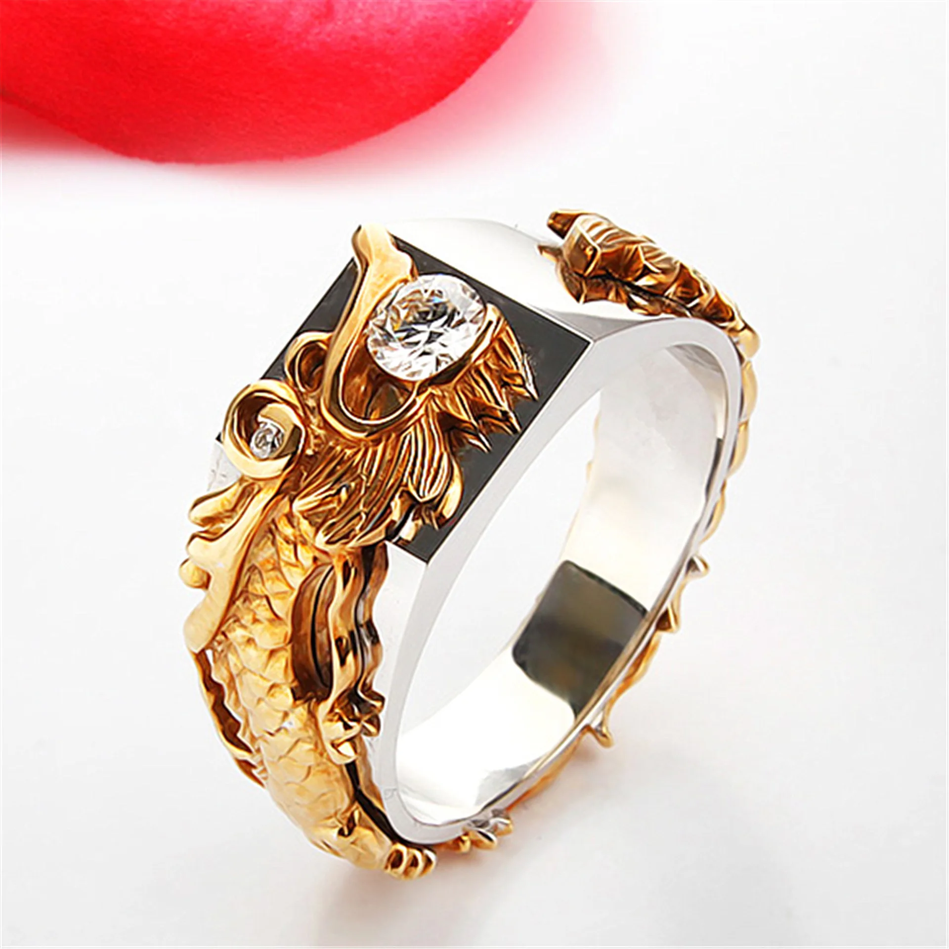 Мужское модное кольцо с резьбой по китайскому дракону золотого цвет...