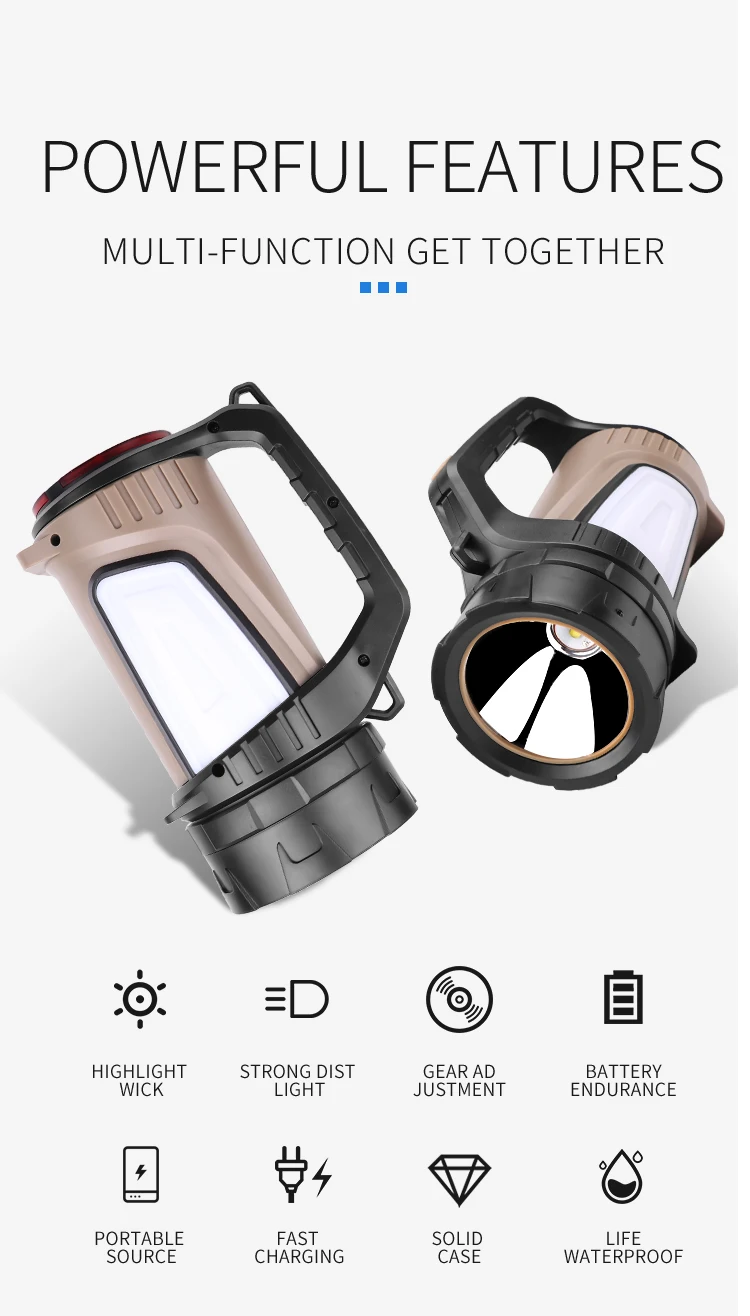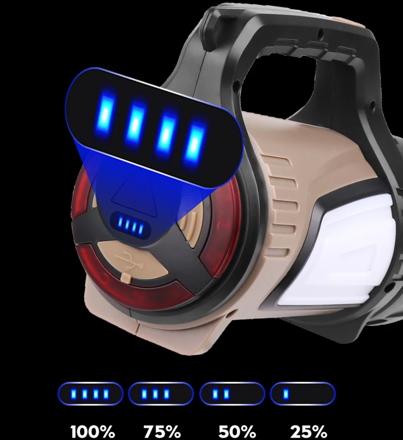 -Он обеспечивает дальность освещения до 300-500 метров и два разных режима освещения, идеально подходит для освещения всей комнаты или лагеря.