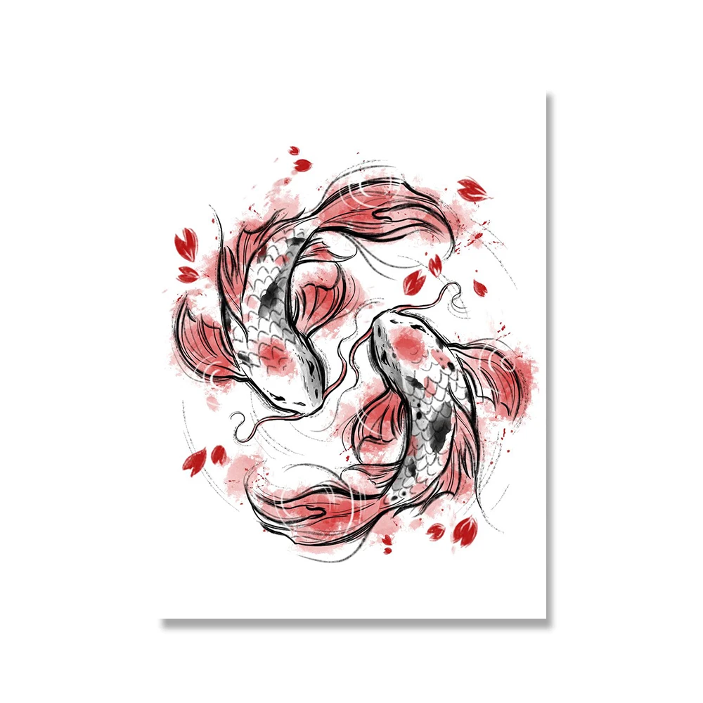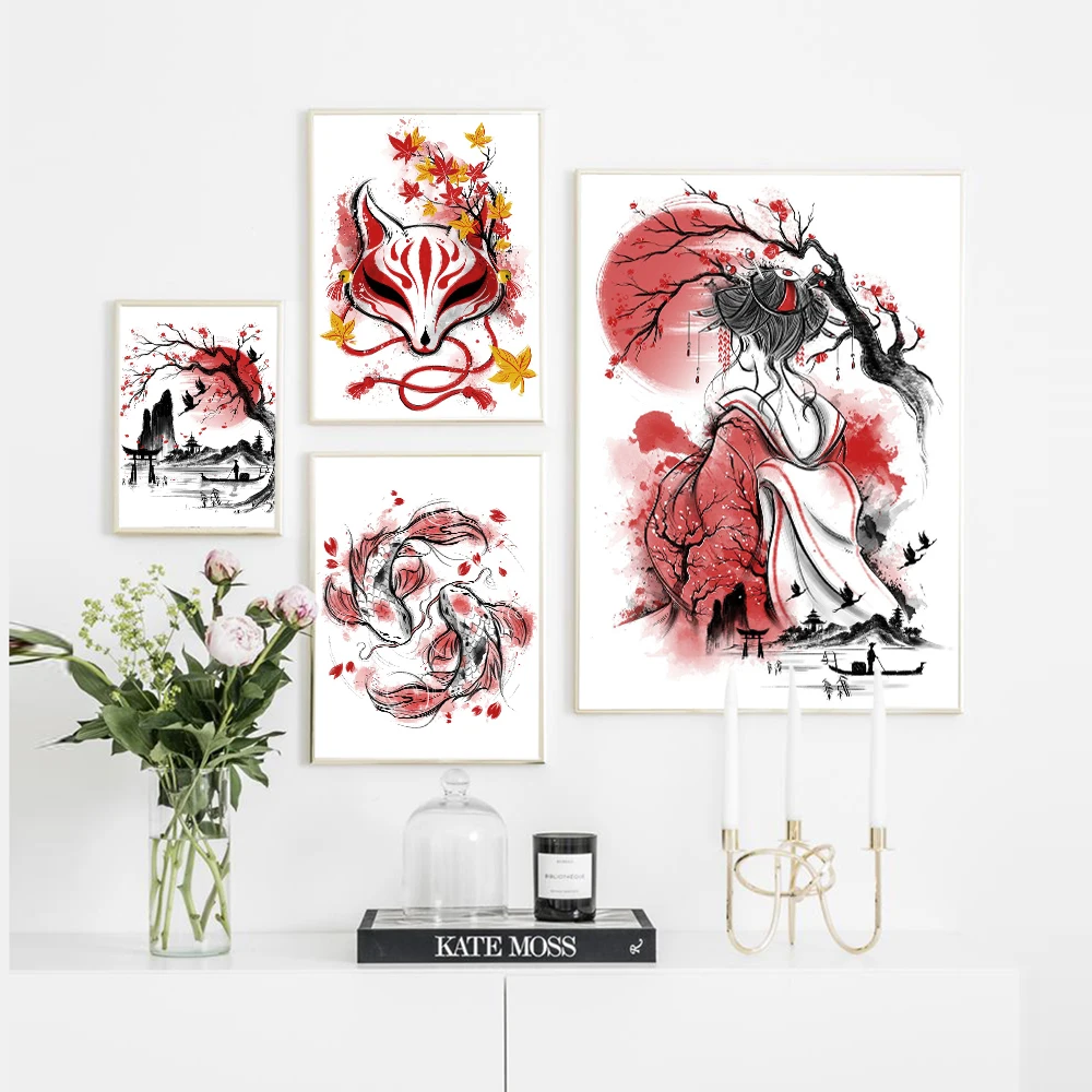 Абстрактная красная серия японская гейша кои Картина на холсте настенное искусство скандинавские плакаты и принты настенные картины для декора гостиной