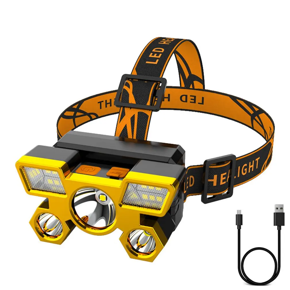 Прямая поставка, 5 светодиодов со встроенным аккумулятором 18650, USB перезаряжаемый портативный фонарик, фонарь, налобный фонарь для кемпинга на открытом воздухе