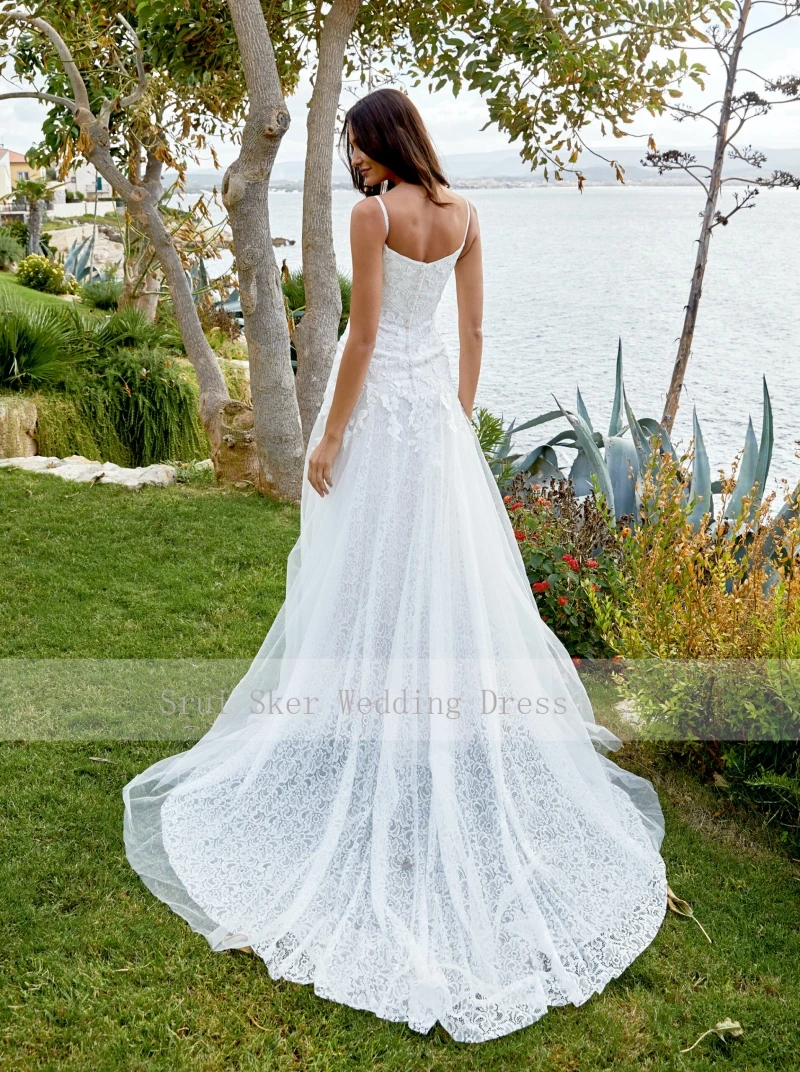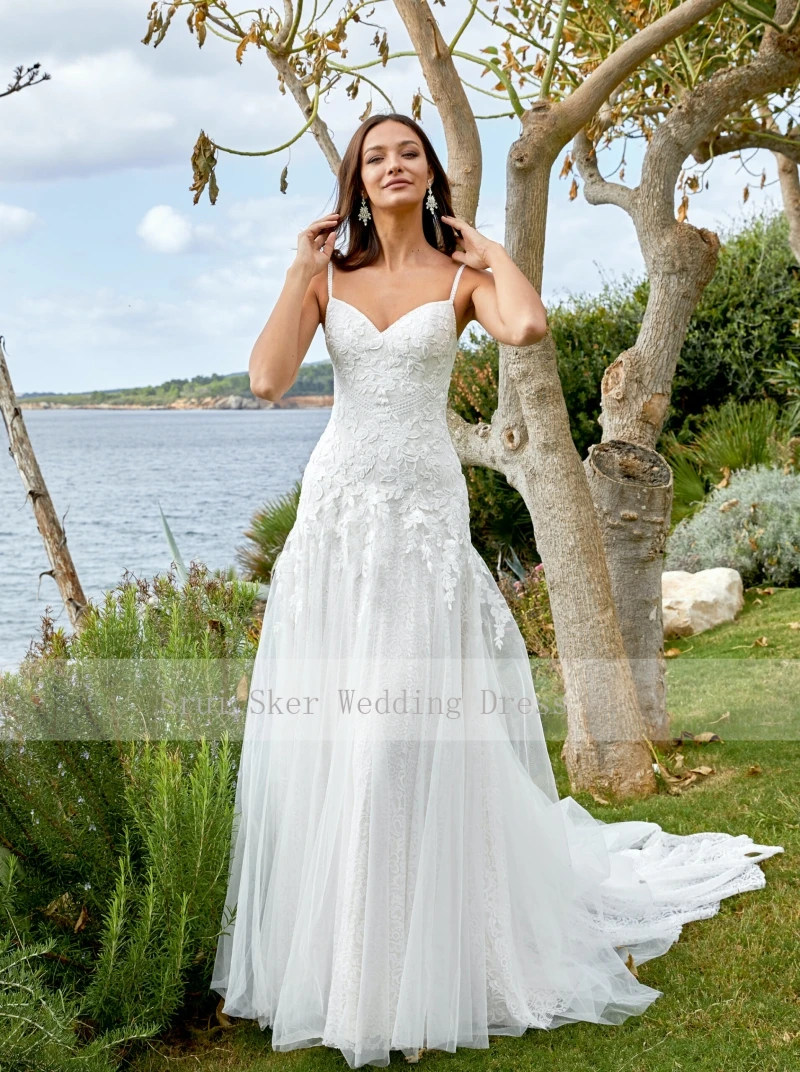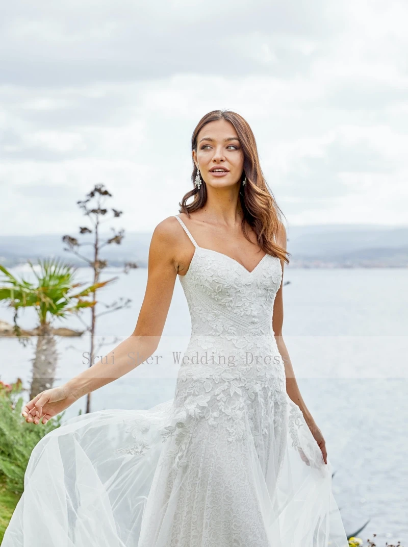 Богемное свадебное платье-футляр, Пляжное кружевное платье на тонких бретельках, индивидуальный пошив, элегантные свадебные платья из тюля, 2021