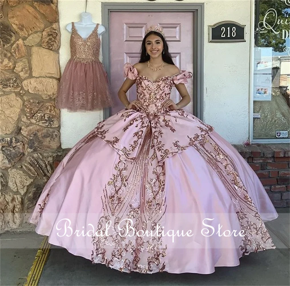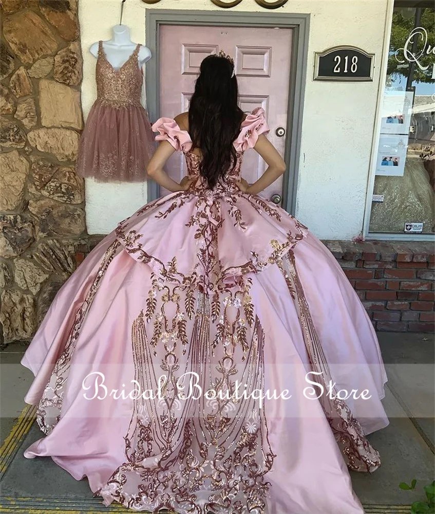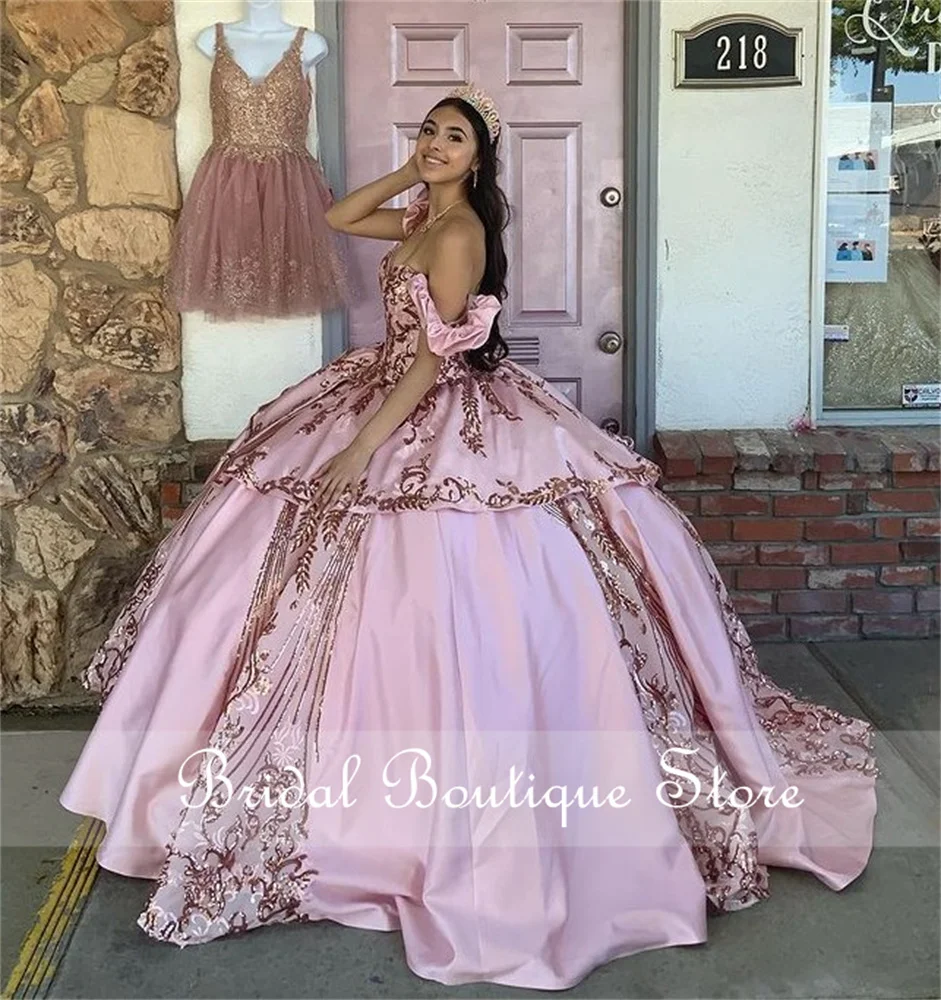 Платье с открытыми плечами, розовое атласное, розовое золото с пайетками, на шнуровке, для выпускного, 16 лет, 2021