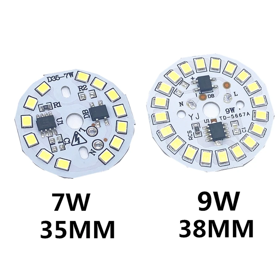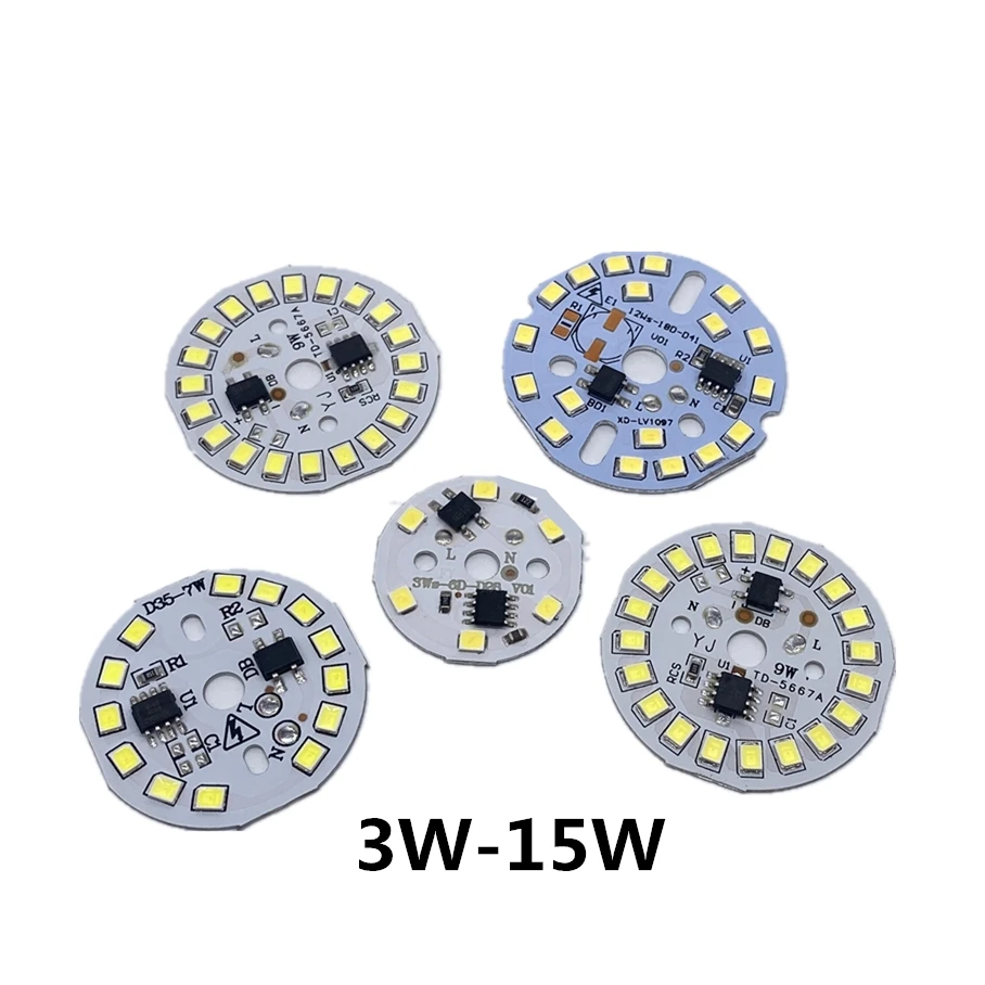 Светодиодная печатная плата SMD2835 с интегрированным IC драйвером, 10 шт., 3 Вт, 5 Вт, 7 Вт, 9 Вт, 12 Вт, 15 Вт, 18 Вт, переменный ток 220 В, теплый белыйбелый, алюминиевая плата для лампы без драйвера