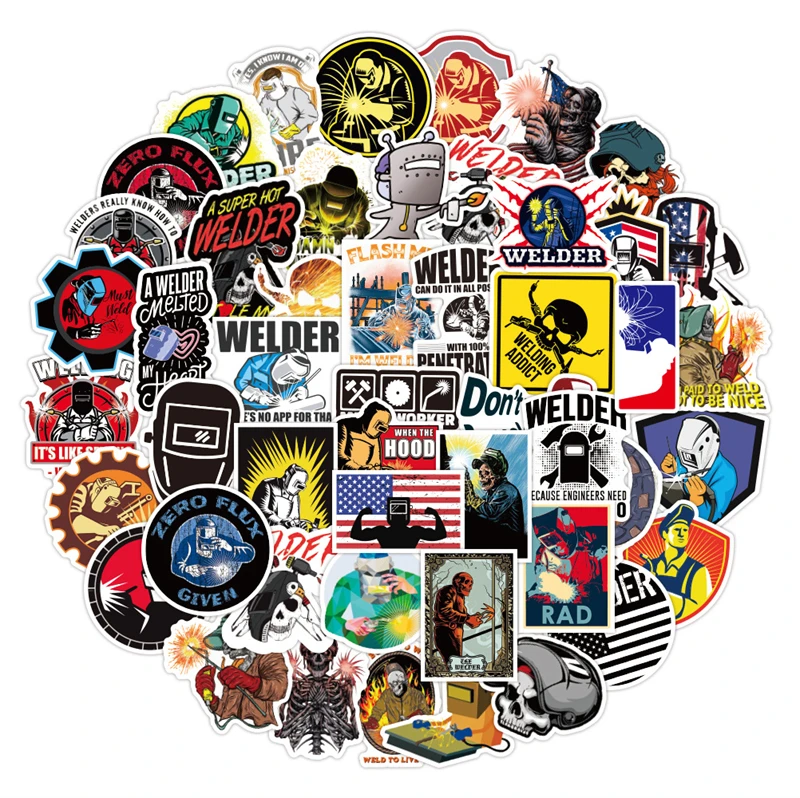 50 шт.лот сварочный шлем электрика, грязевые знаки, наклейки в эсте...