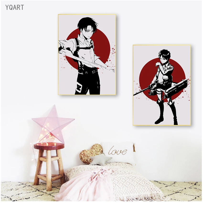 Плакаты и принты из аниме атака на Титанов Эрена джагера Леви Аккермана, настенная Картина на холсте, картины для украшения дома и комнаты