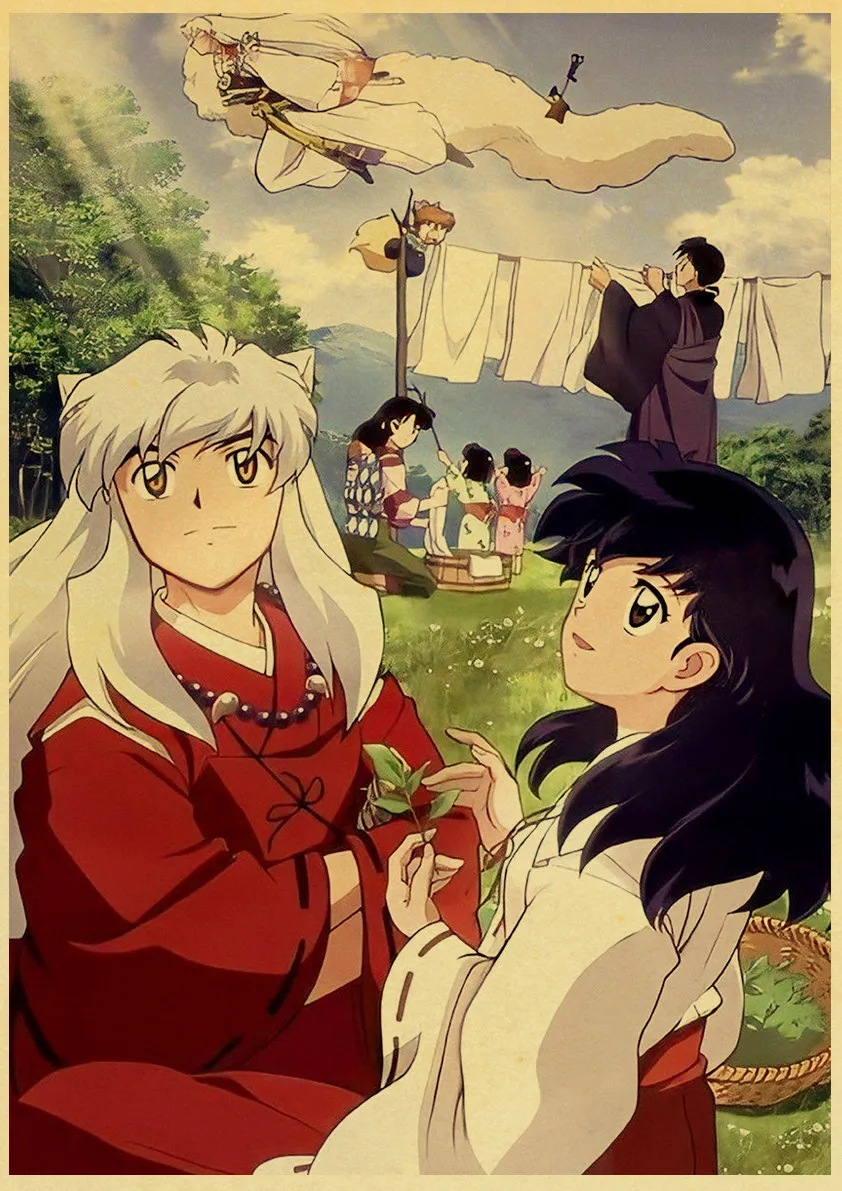 Постеры из кораллового аниме Inuyasha Maitreya, ретро постер, Картина на холсте, Настенная картина, Постер, домашний декор, фотографии для детской комнаты