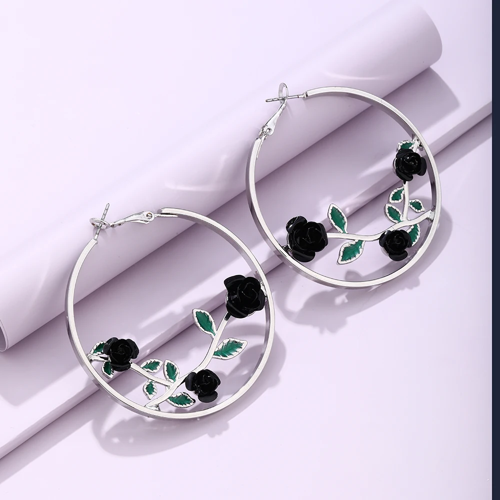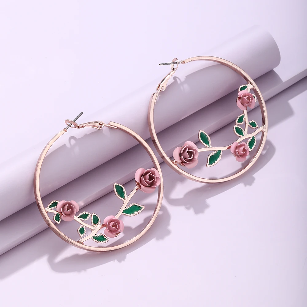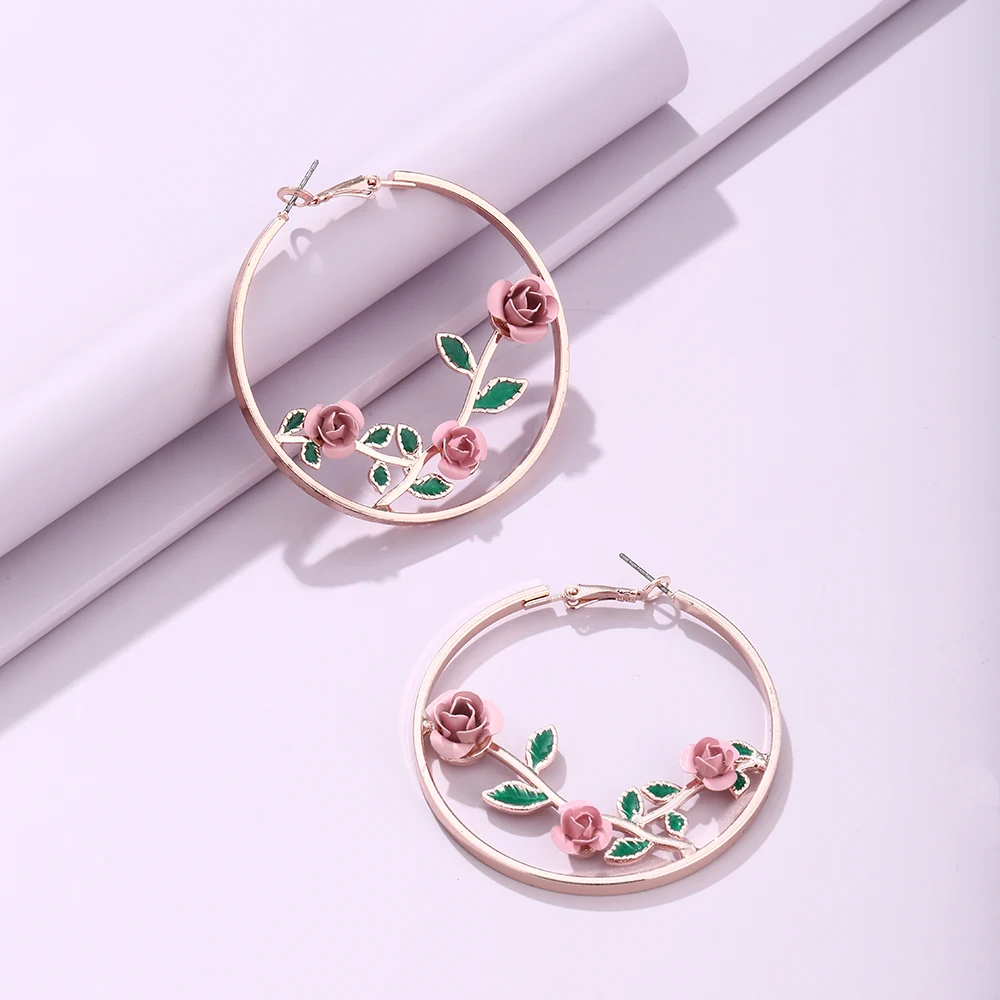 Женские серьги-кольца из сплава, в виде цветка розы