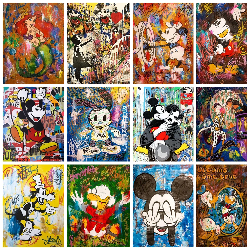 Алмазная живопись сделай сам 5D, Дисней, граффити, Микки, Минни, полная выкладка, алмазная вышивка, вышивка крестиком, искусство