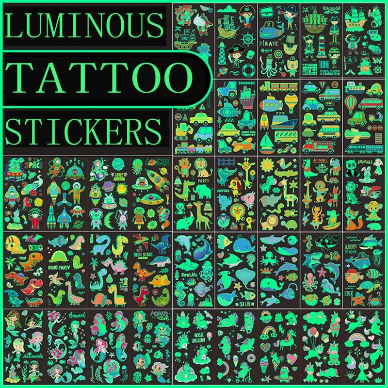Светящиеся Мультяшные наклейки для детей, временная сияющая тату дл...