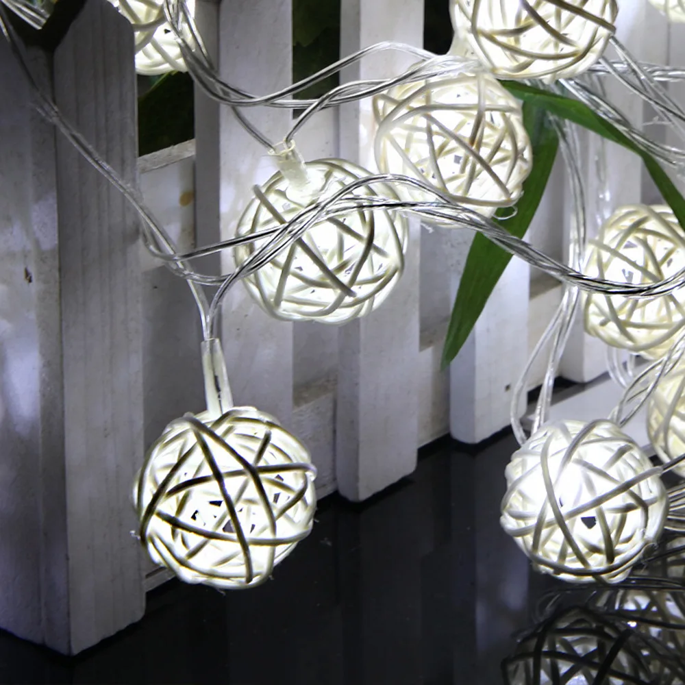 Светодиодная гирлянда с шариками из ротанга, гирлянда на батарейках...