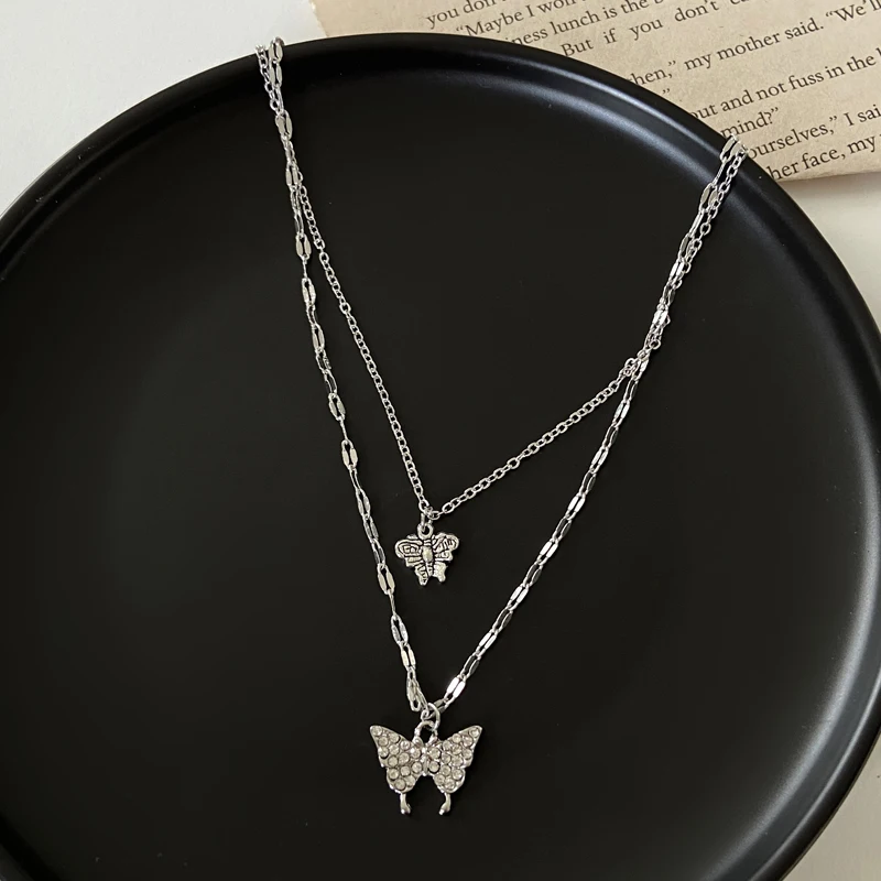 Блестящее ожерелье ZZYY в виде бабочки, женское Двухслойное ожерель...